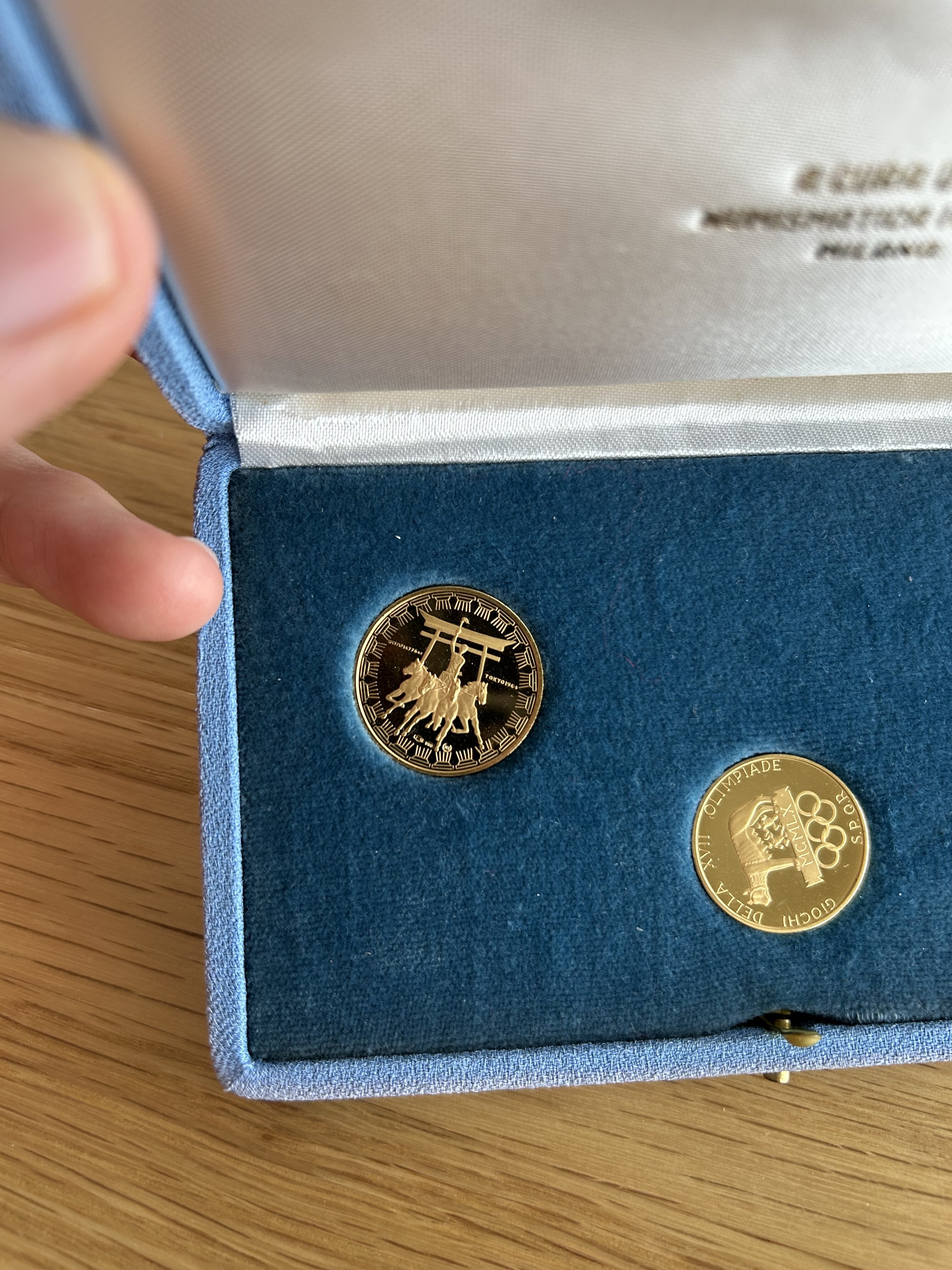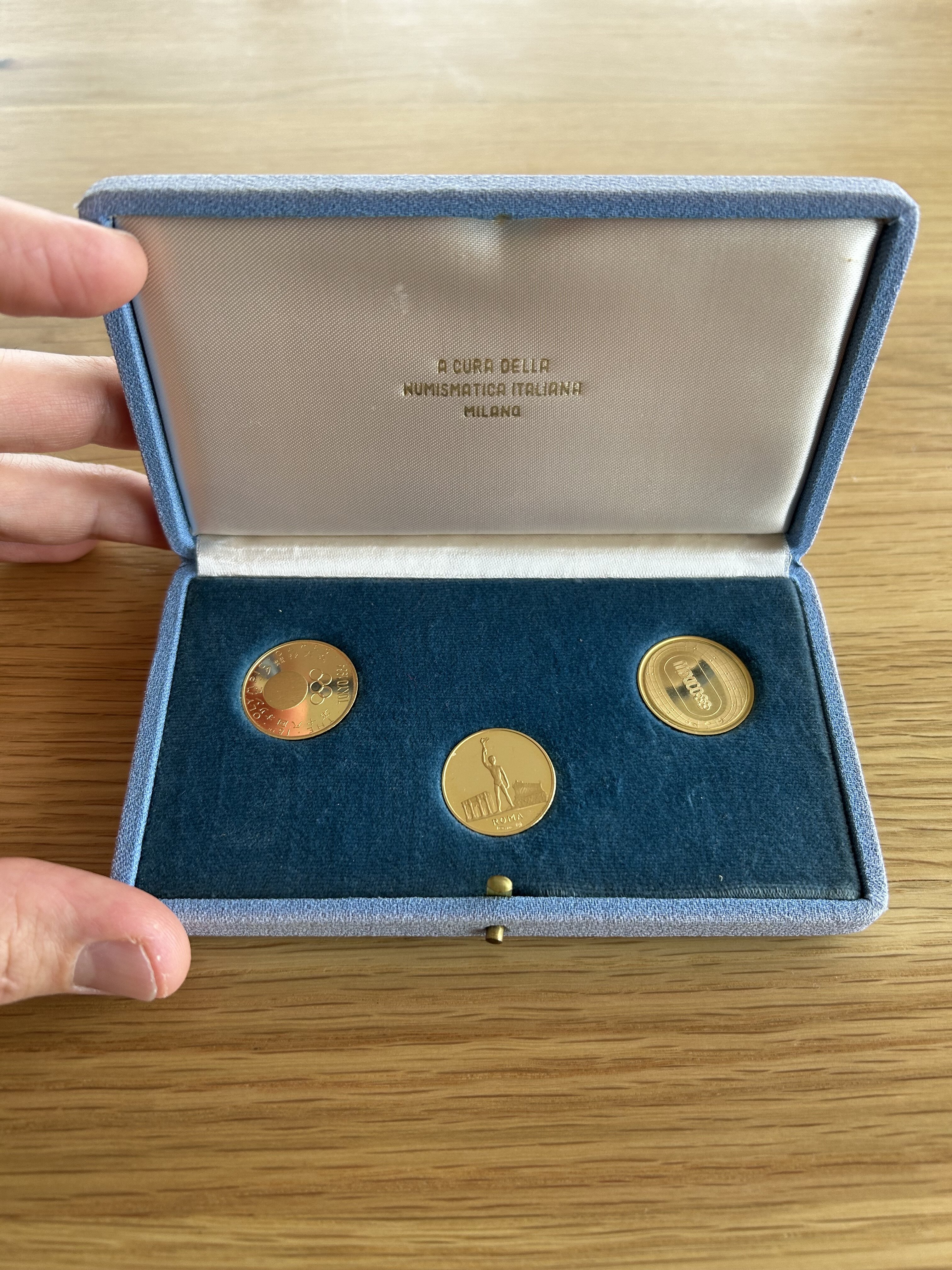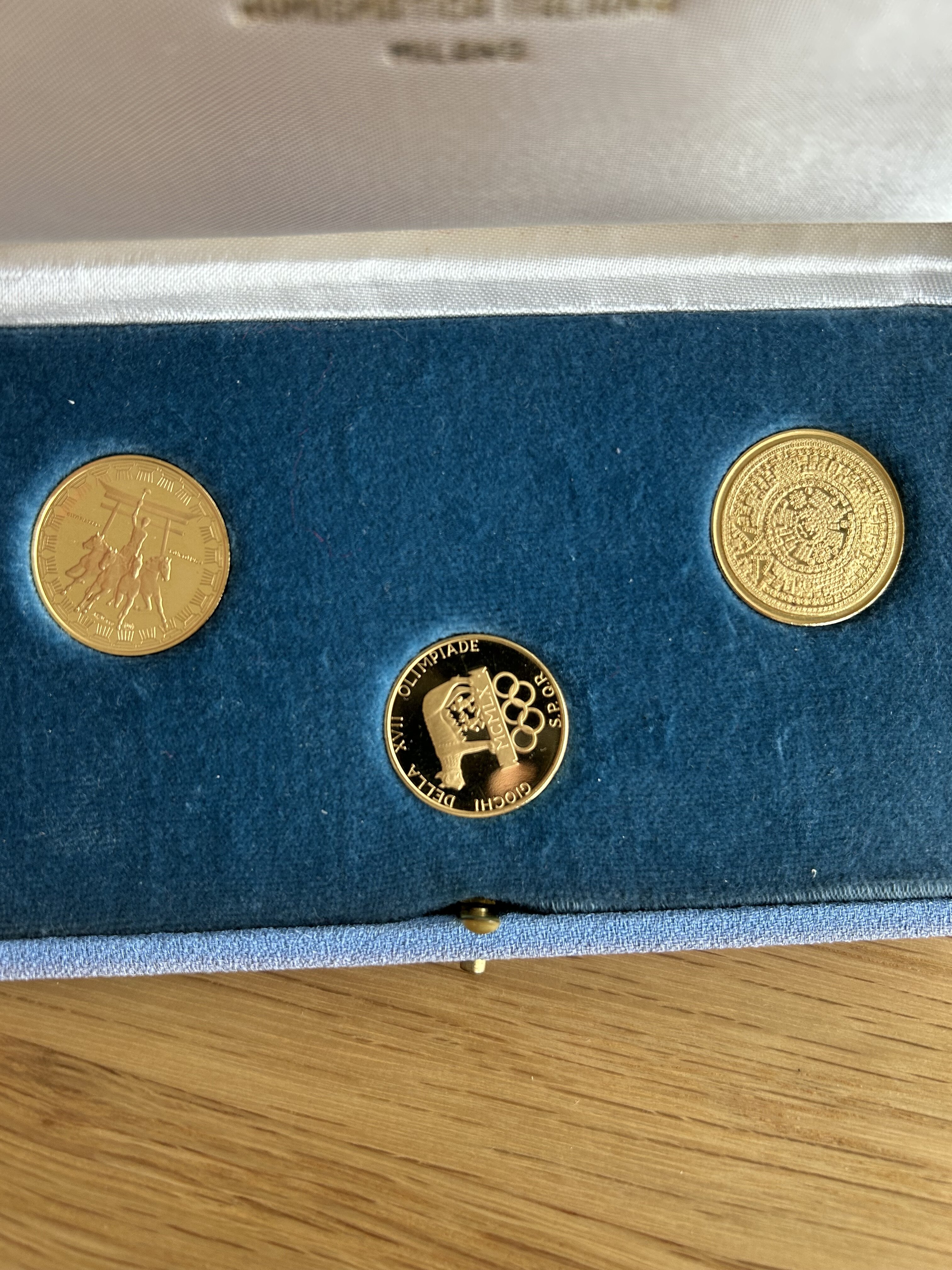 Ho ereditato queste monete commemorative battute dalla Numismatica Italiana per l’atterraggio sulla luna e le Olimpiadi di Roma. Qualcuno mi saprebbe dire se sono rare ed hanno un valore per eventuali collezionisti (oltre al valore dell’oro)? Non sono sicuro se questo forum si occupi di monete di questo tipo ma ho pensato di provare comunque.