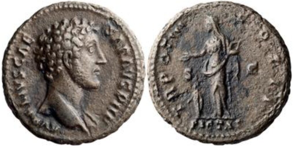 anche se molto rovinata , potrebbe essere una moneta (asse?) di Marco Aurelio  o di qualche altro imperastore?