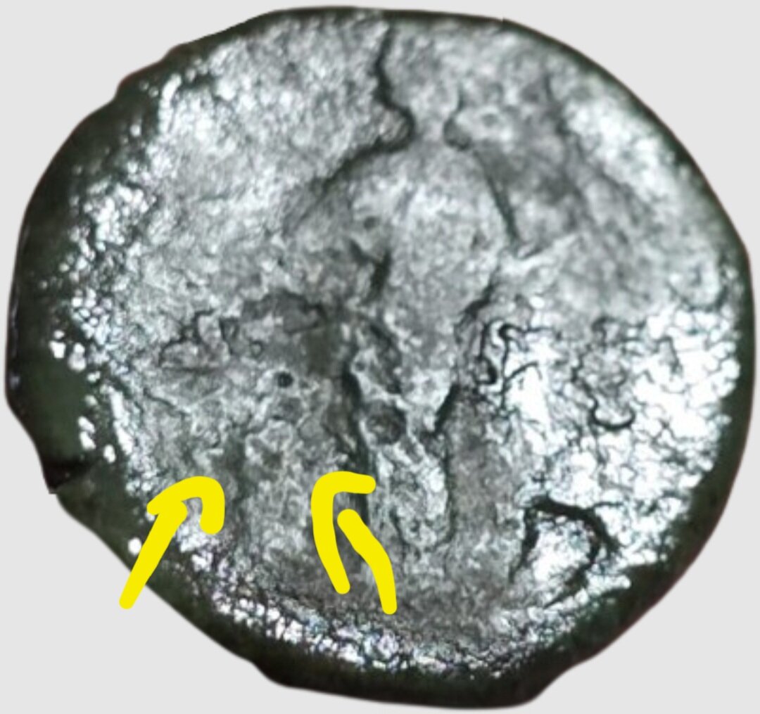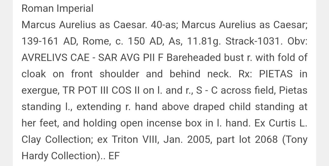 Ciao, io restringerei come imperatori ad Antonino Pio come individuato da @Ale75 senza escludere come hai detto tu Marco Aurelio. La tipologia sembra essere quella della Pietà. L'oggetto che si vede ai piedi della Pietà (che ti indico nella foto) riesci a capire se si tratta di un altare sacrificale o di una figura di bambino? Posto esemplare di asse di Marco Aurelio che potrebbe essere indicativo. Purtroppo la moneta è molto rovinata percui di più è difficile aggiungere 🙂.