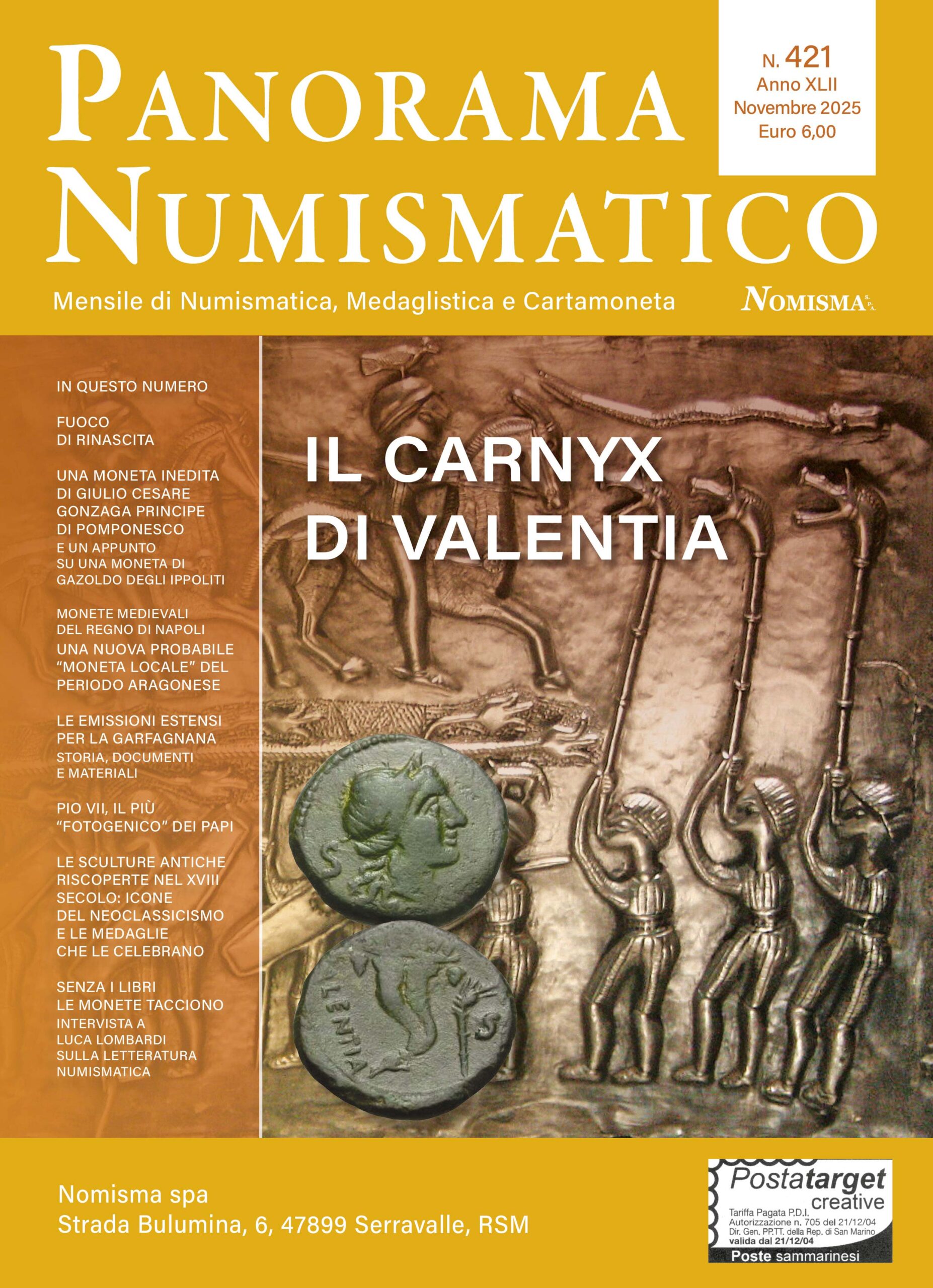 È uscito il nuovo numero di «Panorama Numismatico» (n. 421, novembre 2025).