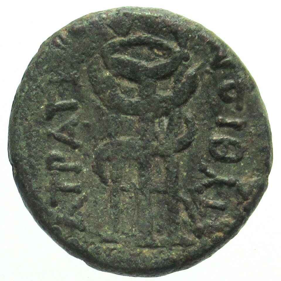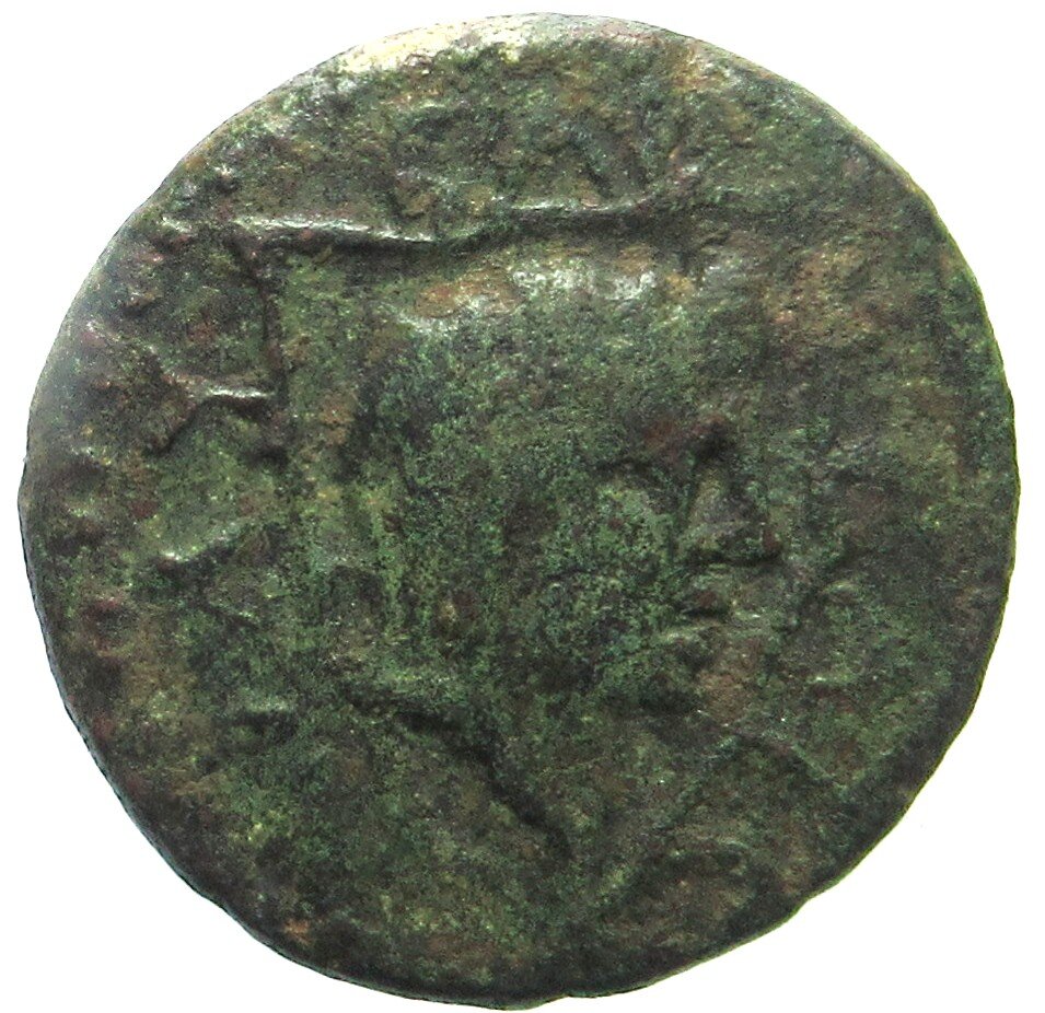 Sicilia, Lilibeo. L. Sempronio Atratino, 36 a.C. Æ (28,5mm, 18,26g, 12h). Testa velata e turrita r., entro ornamento triangolare. R/ Serpente intrecciato attorno al treppiede. RPC I 655