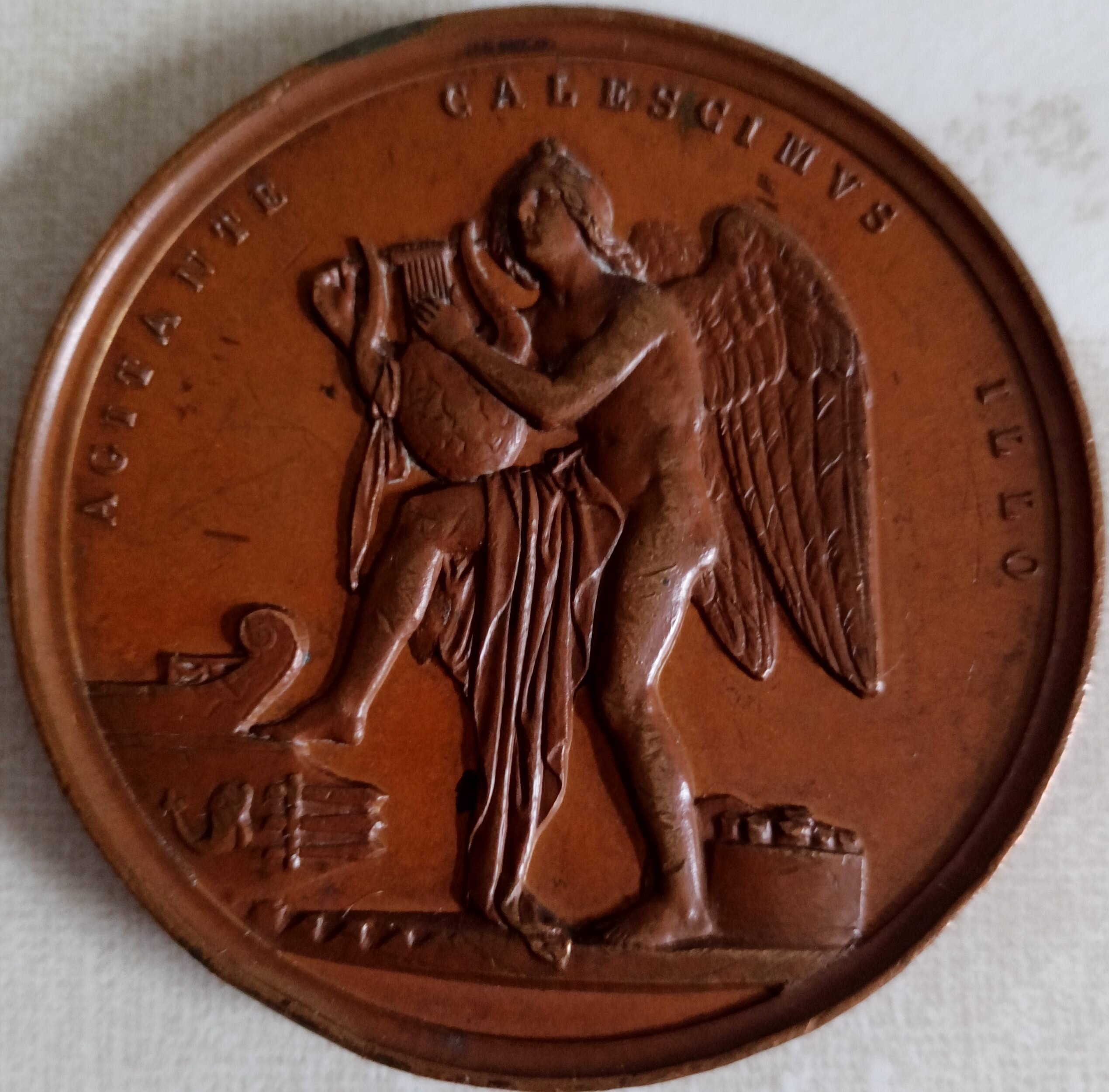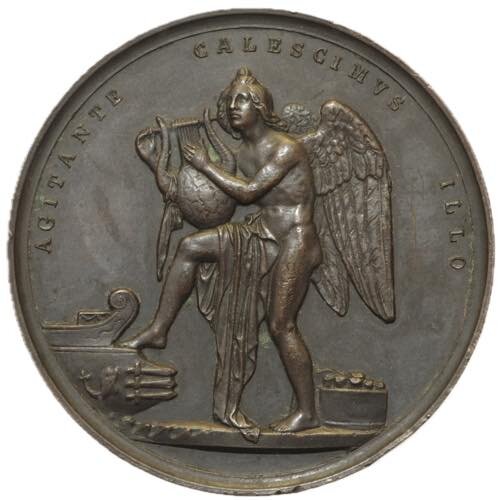 Ecco un'altra delle monete viste a Torino; questa purtroppo contiene pochissimi dati, solo  l'incisore (G.Galeazzi F.), non so neppure l'anno ed il luogo di produzione. Era la più grande del lotto: direi fra i 32 e i 35 mm, e un peso di almeno 30 g o più. In rete finora non l'ho trovata, ma dato il nome dell'incisore dovrebbe essere individuabile.