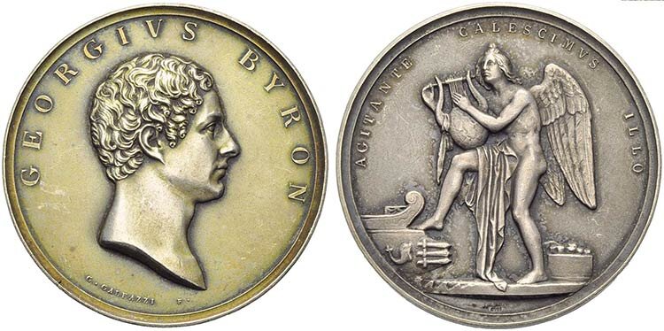 PERSONAGGI - George Gordon Byron (poeta e politico) (1788-1824) - Medaglia Opus: Galeazzi Ø: 55 mm. - AG