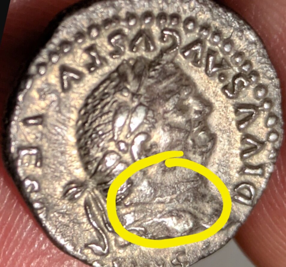 @AtexanoNon mi riferivo a lettere interessate da doppia battitura come nell'esemplare di Aureliano ( il doppio profilo ed il busto ci dicono che c'è stato uno slittamento o doppio colpo). Ma al fatto che le lettere hanno una conformazione anomala rispetto la norma non supportate da altri segni che possono far pensare a doppi colpi o slittamento. Cosi come i campi irrwgolari ed in particolare il collo di Vespasiano. Sono esfoliazioni del metallo? O che cosa? Un esemplare secondo me da esaminare molto attentamente dal vivo.