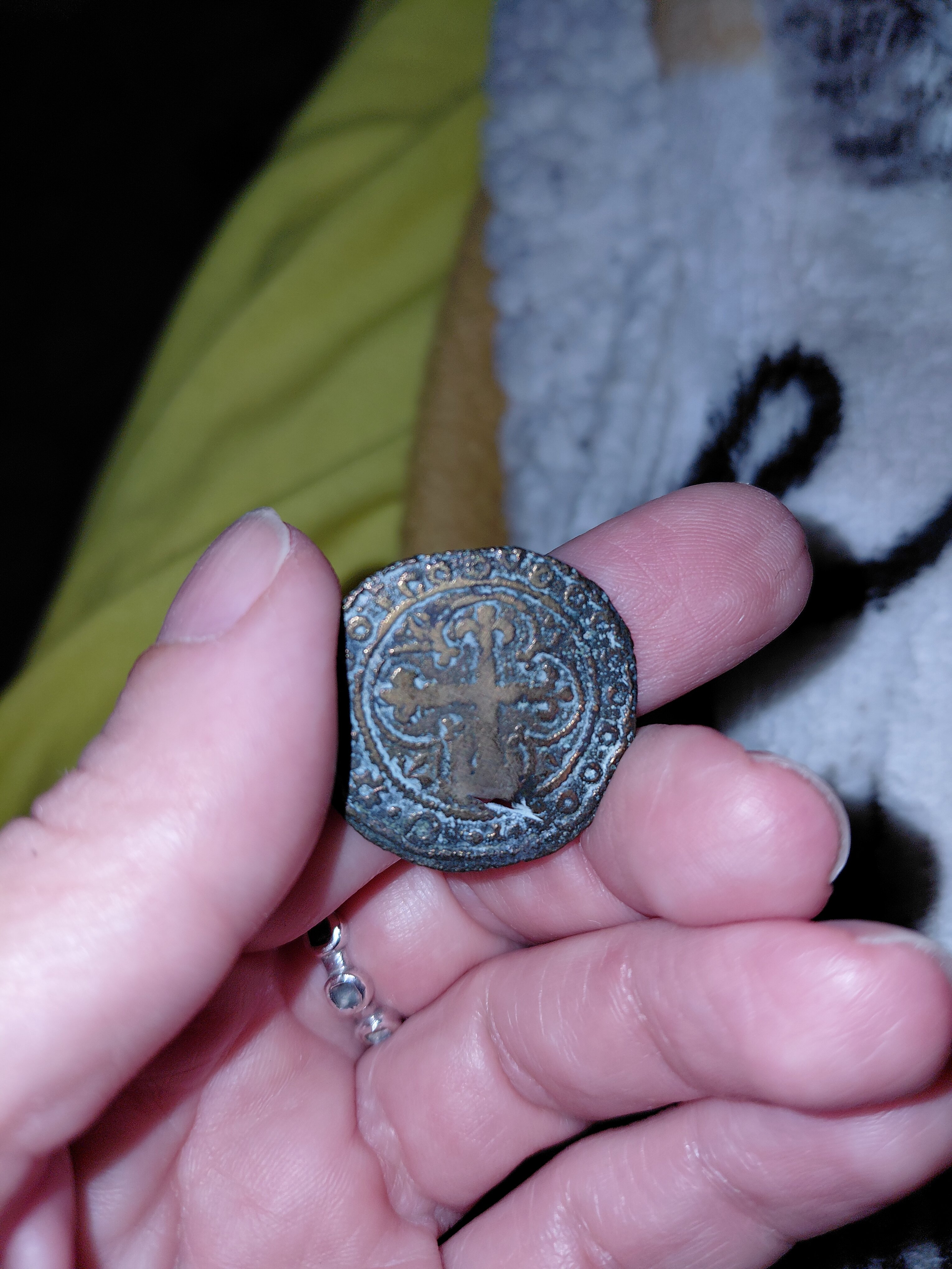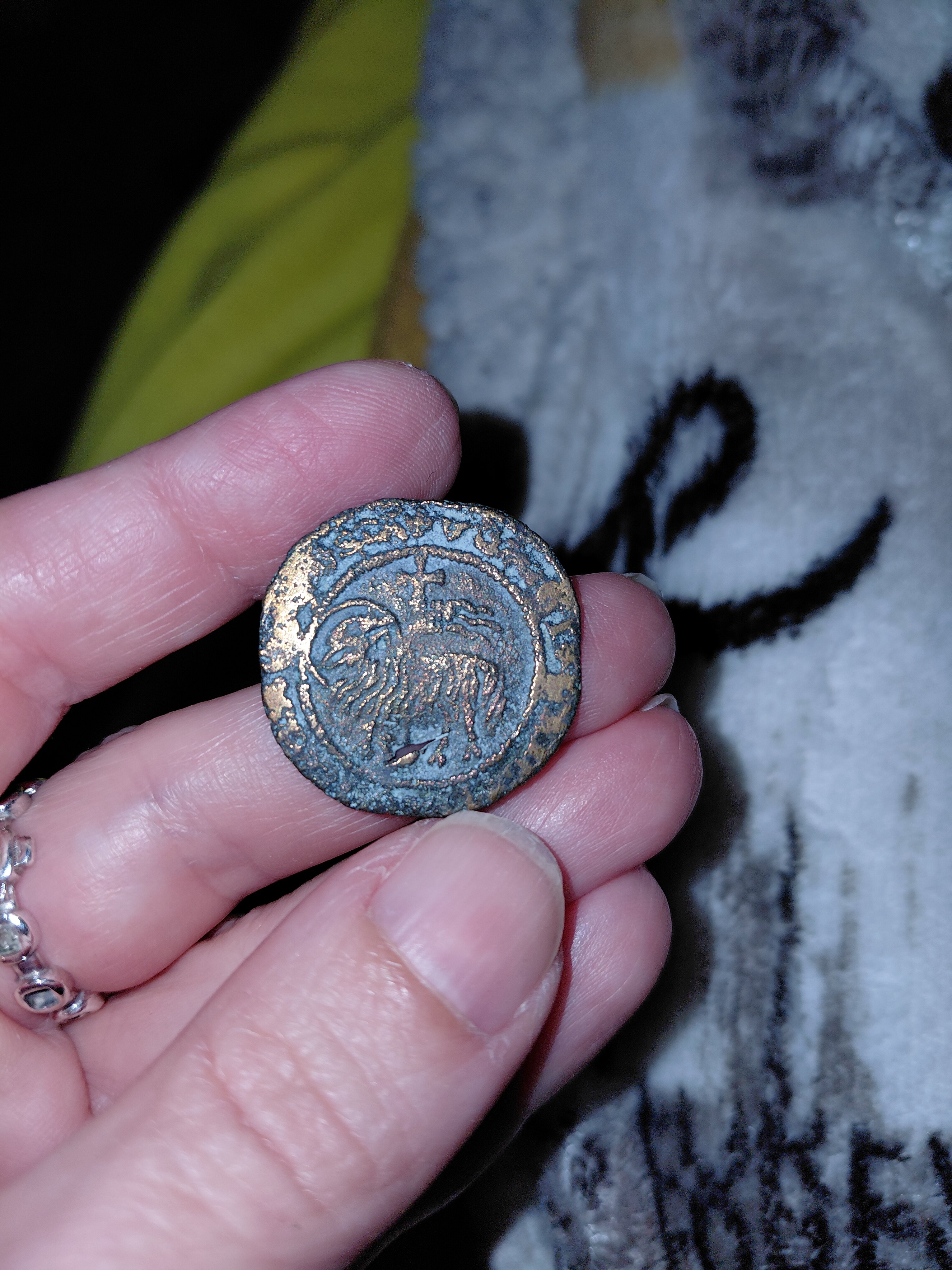 Somiglia molto ad alcune monete medievali spagnole: al rovescio è raffigurato l' "agnus dei" che sarebbe il simbolo di cristo che è molto frequente, appunto, nella monetazione medievale spagnola.