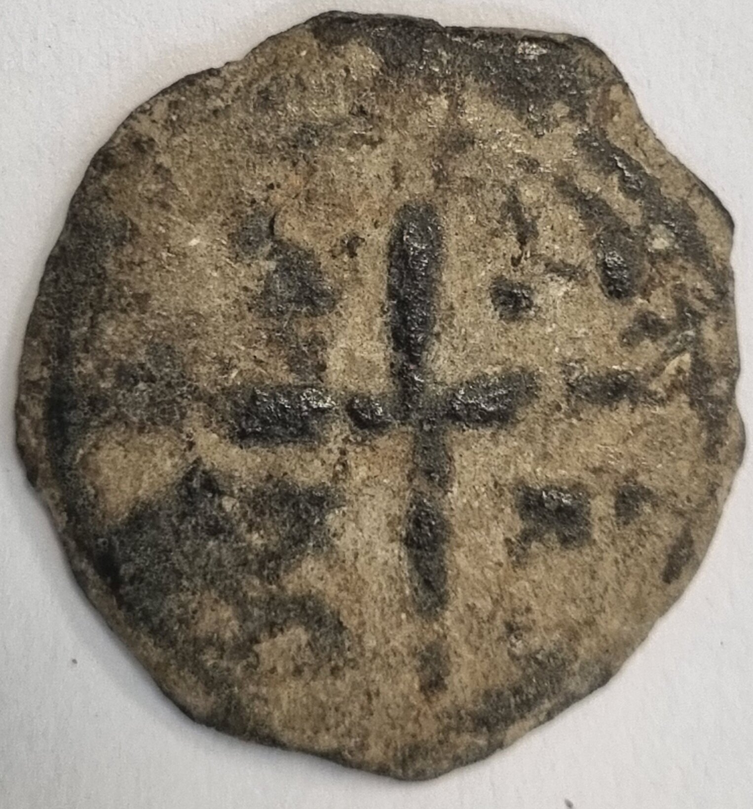 Io vedo al dritto una figura in piedi e (a tratti) una ulteriore figura a sinistra. Al rovescio una croce con credo 4 segni nei campi.