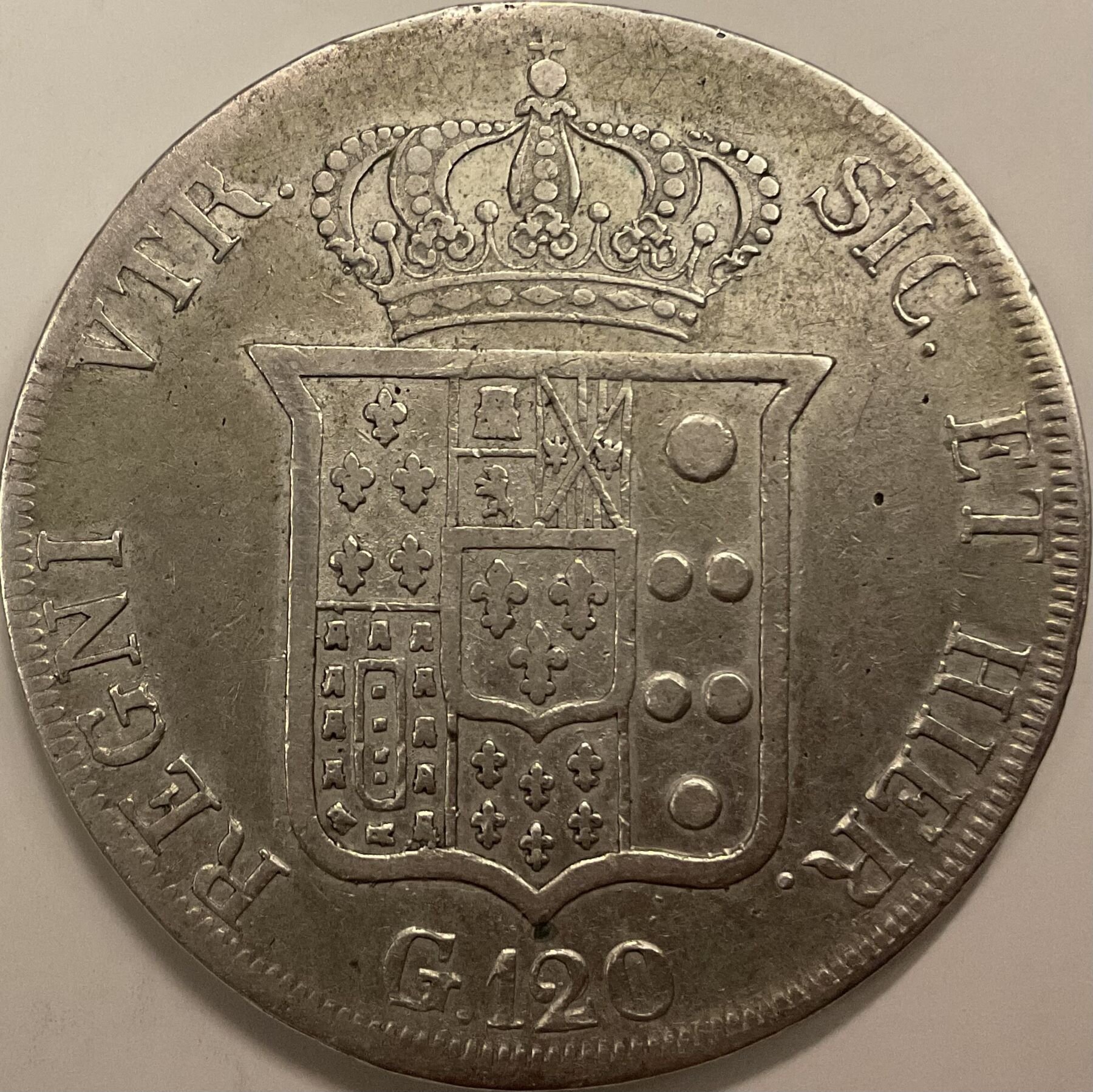 Salve. Pubblico una delle prime monete da me acquistate. Una piastra 120 grana 1834. Non l'ho mai presentata sul forum, ma da sempre ho avuto dei dubbi sulla sua autenticità, principalmente per il peso di soli 25,90 grammi. Come devo considerarla? Io non ho l'occhio allenato a distinguere le monete autentiche da quelle false. Grazie.