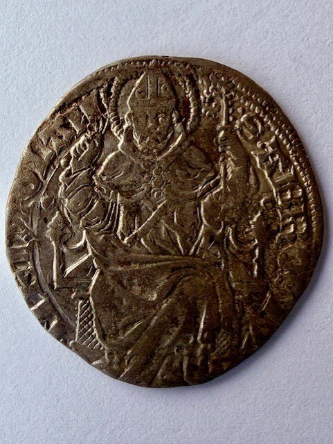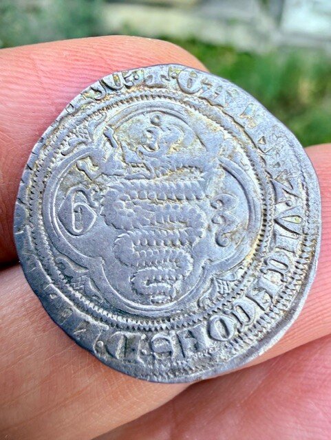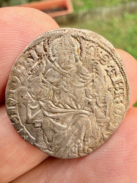 ho appena aggiunto in collezione questo Pegione/Grosso da 1,5 soldi di Milano, Gian Galeazzo Visconti ( 1385-1402 ); argento, grammi 2,35. A diritto la biscia viscontea simbolo dei Visconti e di Milano tra lettera G e numero 3, a rovescio Sant'Ambrogio patrono della città meneghina, in trono. Questo esemplare, che mi sembra essere solo in modestissima conservazione, presenta la seguente variante : anellino sopra la testa della biscia ed a rovescio due anellini, uno a sinistra e l'altro a destra del Santo. Ho un dubbio e vorrei chiedere per cortesia, agli esperti di questa monetazione, se la datazione della moneta è corretta; 1385-1402 oppure 1395-1402. In allegato alcune foto. Grazie per l'attenzione.