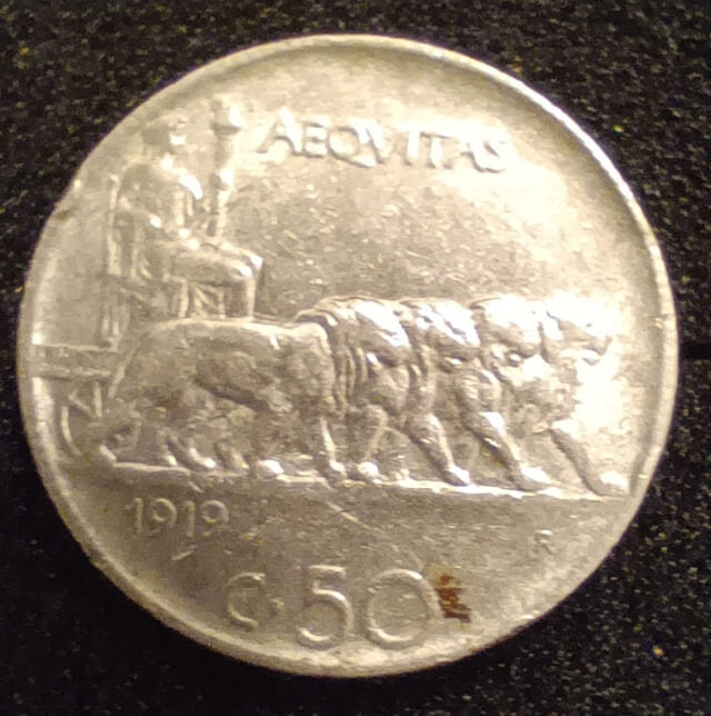 Buonasera cari amici lamonetiani. Mi è appena arrivato un lotto di monete varie. Tra esse era presente questo 50 centesimi 1919 bordo rigato. So che è una moneta comune in bassa conservazione, ma appena posso ne compro sempre qualcuna, mi piacciono tantissimo. Per me non è semplice valutare le monete in nichelio e quindi chiedo il vostro parere sullo stato di conservazione di questa monetina. Grazie in anticipo a chi vorrà dedicare qualche minuto a questa conversazione.