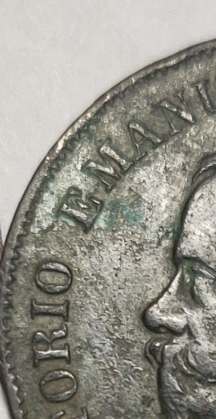 Buonasera, vorrei chiedervi se questa moneta ha il cancro di bronzo o qualcos'altro, per ora non ho provato con lo stuzzicadenti . Perdonatemi le foto . Grazie e buona serata.