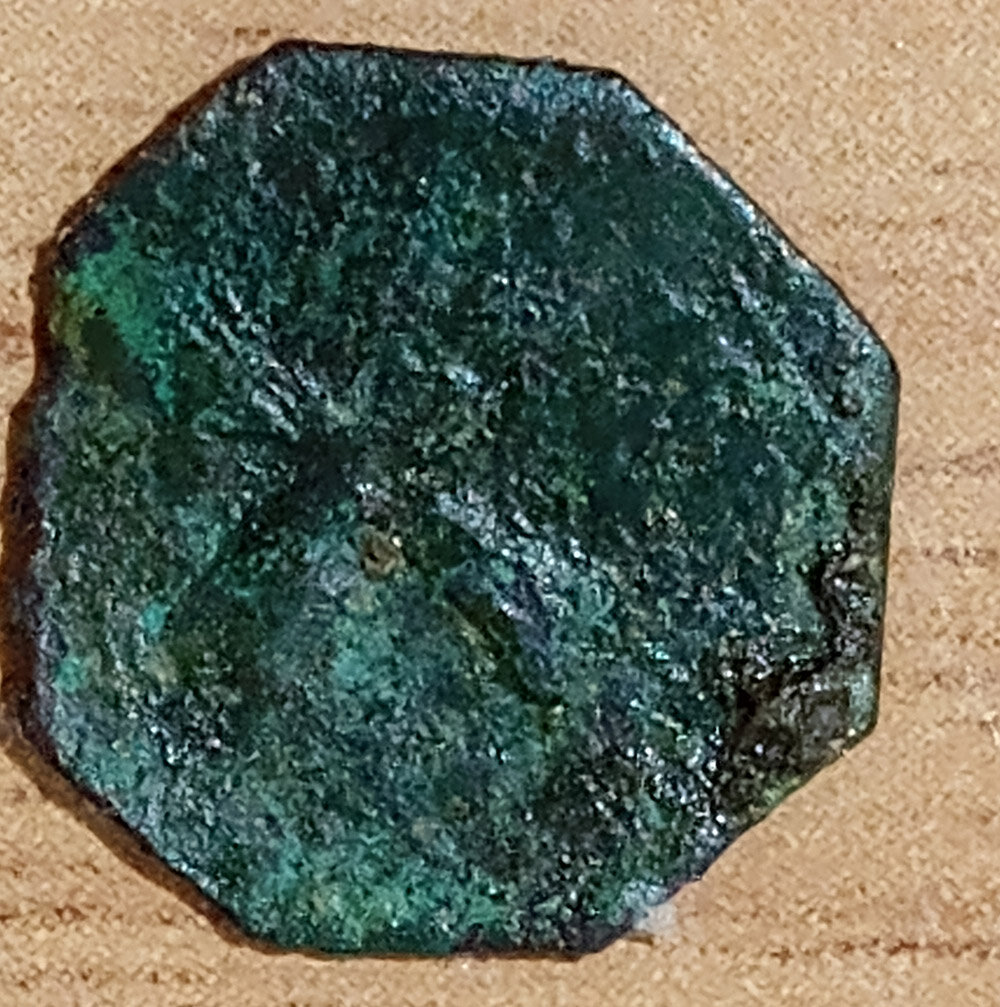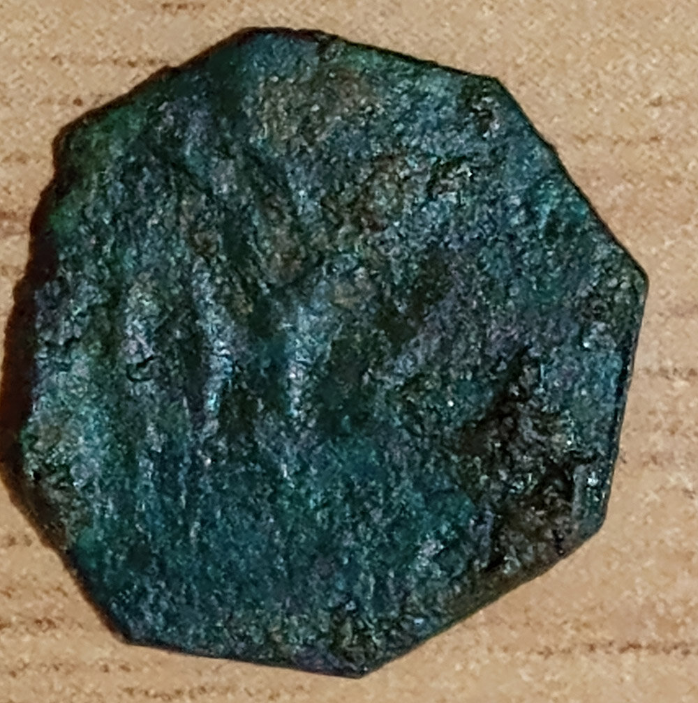 Salve a tutti, ho una moneta ottagonale di 12mm, quasi completamente liscia. Mi chiedevo se qualcuno riuscisse a identificarla dai pochi particolari che si riescono a vedere, da un lato una specie di croce e dall'altro alcune piccole linee.