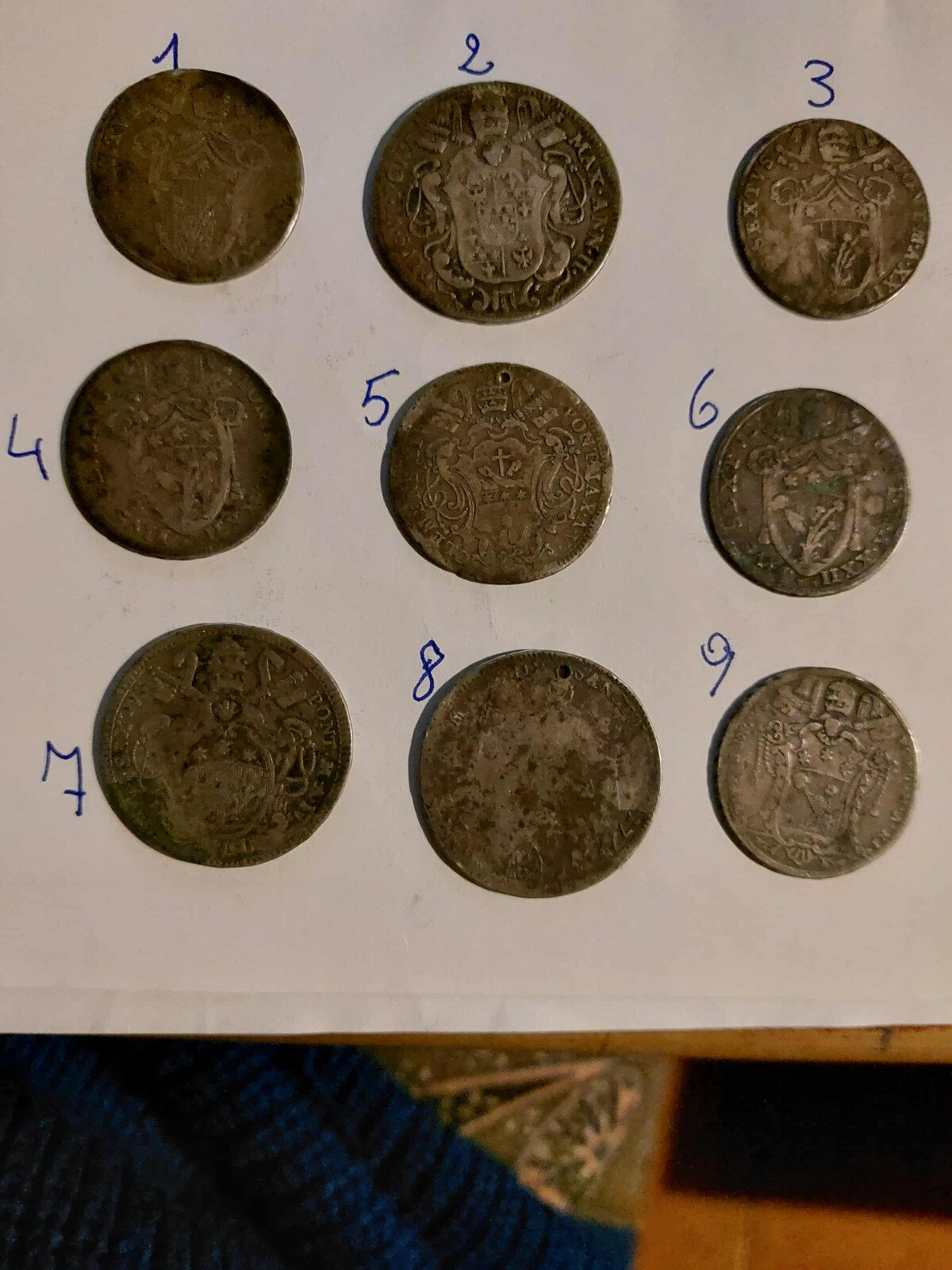 Buongiorno, chiedo aiuto alla vostra competenza per identificare queste monete ed anche il loro valore. purtroppo nn ho I ponderali, nn essendo in mio possesso, grazie