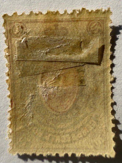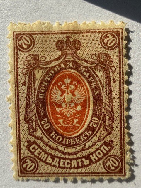Alan Sinclair Inviato 1 ora fa Supporter #1 Inviato 1 ora fa Buon Pomeriggio a Tutti, condivido oggi questo francobollo russo del 1889 da 70 kopecki, colore bruno e arancio. L'esemplare presenta l'aquila imperiale ed il corno postale con le folgori, carta vergata, dentellato 14 1/2 X 15 ( Sassone 51 del 1957 ). Nel rovescio ( non un buonissimo stato ), intravedo ben 3 linguelle. A tal riguardo chiederei cortesemente a @PostOffice e @fapetri2001 , ma anche a tutti gli altri utenti, se le linguelle possono rimanere o se si rende necessario rimuoverle. Formulo questa domanda perché mi sembrava di aver letto tempo fa che questa tipologia di francobolli può scolorire a contatto con i liquidi. Grazie.