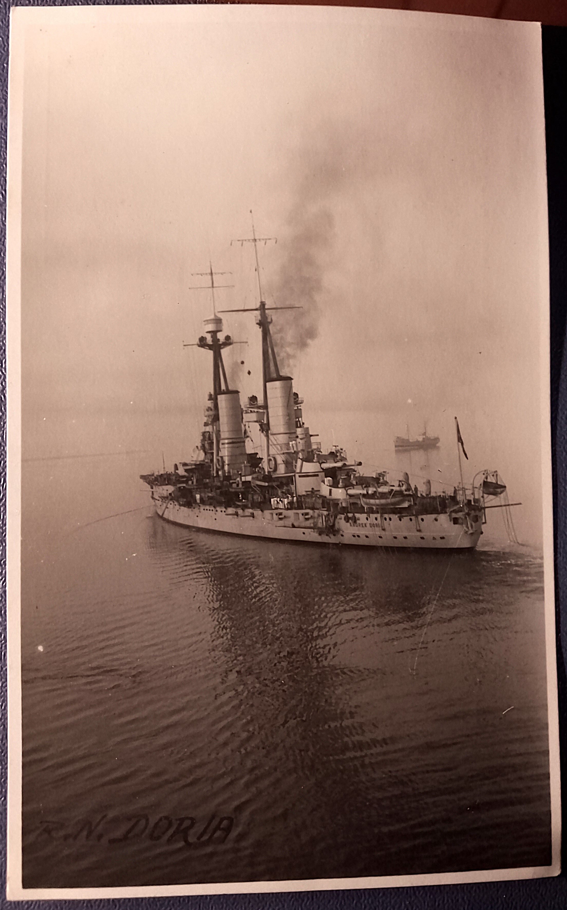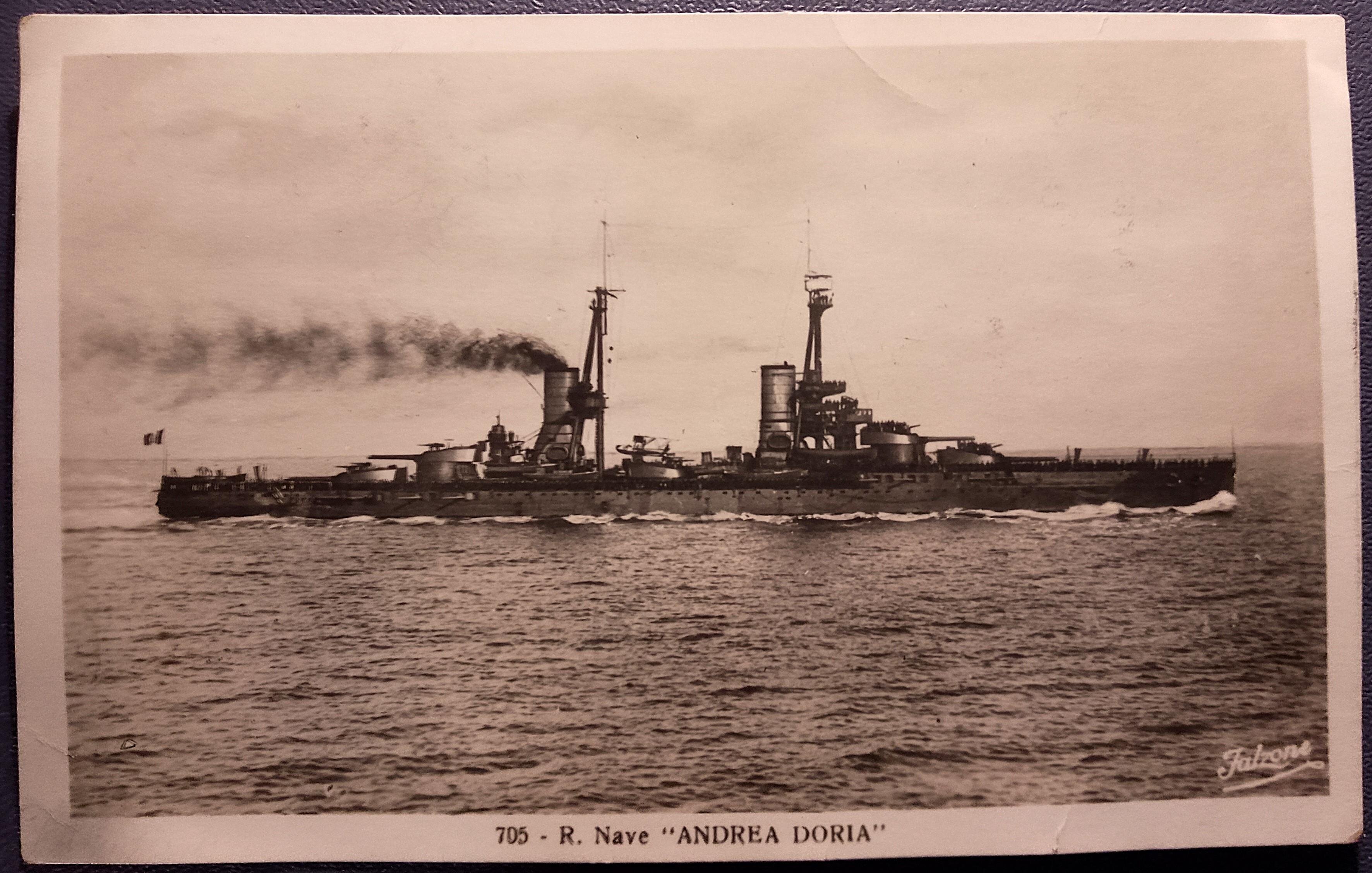 Carlo. Inviato 1 ora fa #2 Inviato 1 ora fa Bella cartolina! Questa è la Andrea Doria (che si scriverebbe D'Oria, in realtà) regia nave, cioè militare, non il transatlantico. Noto che anche che la seconda ha un bel bollo pubblicitario dedicato ai fumatori di sigari!
