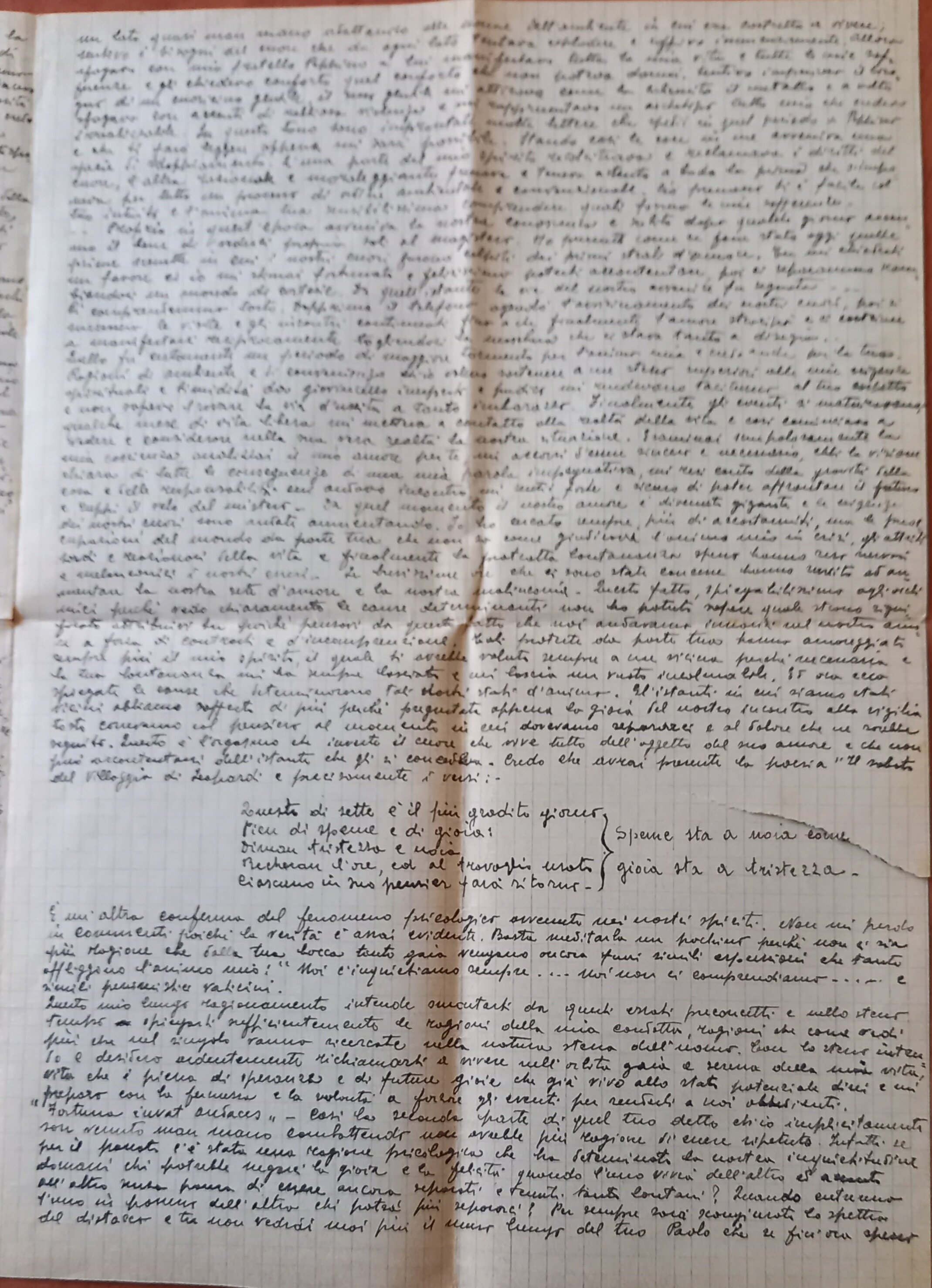 dareios it Inviato 41 minuti fa Supporter #1 Inviato 41 minuti fa Buona domenica ragazzi, scusatemi per il titolo della discussione, ma poi capirete il perché. Mi è capitata questa lettera d'amore che il mittente Paolo invia alla morosa Luisa e mi sono divertito a fare dei conteggi, perché questa lettera è lunghissima! Sono 280 righe e circa 1700 parole per un totale all'incirca di 117.000 lettere! Ma quanto ci avrà messo a scriverla? Non ci provo nemmeno a trascriverla, immaginerete perché, magari solo l'inizio che è già tutto un programma. Inizia così: "Indispensabile luce dei giorni miei". Grazie per l'attenzione. Sono gradite informazioni di carattere generale e postali. All'inizio della lettera, il mittente incolla una sua foto minuscola.