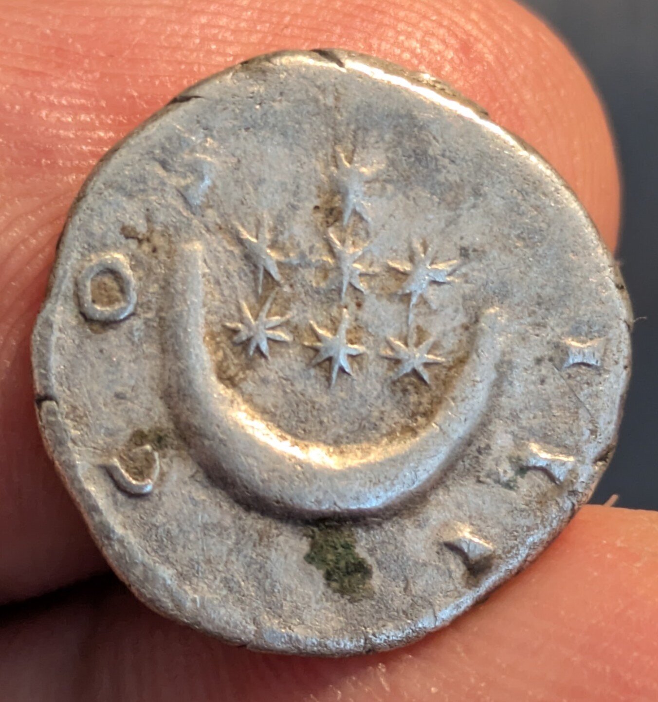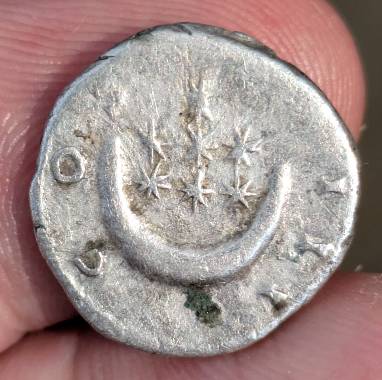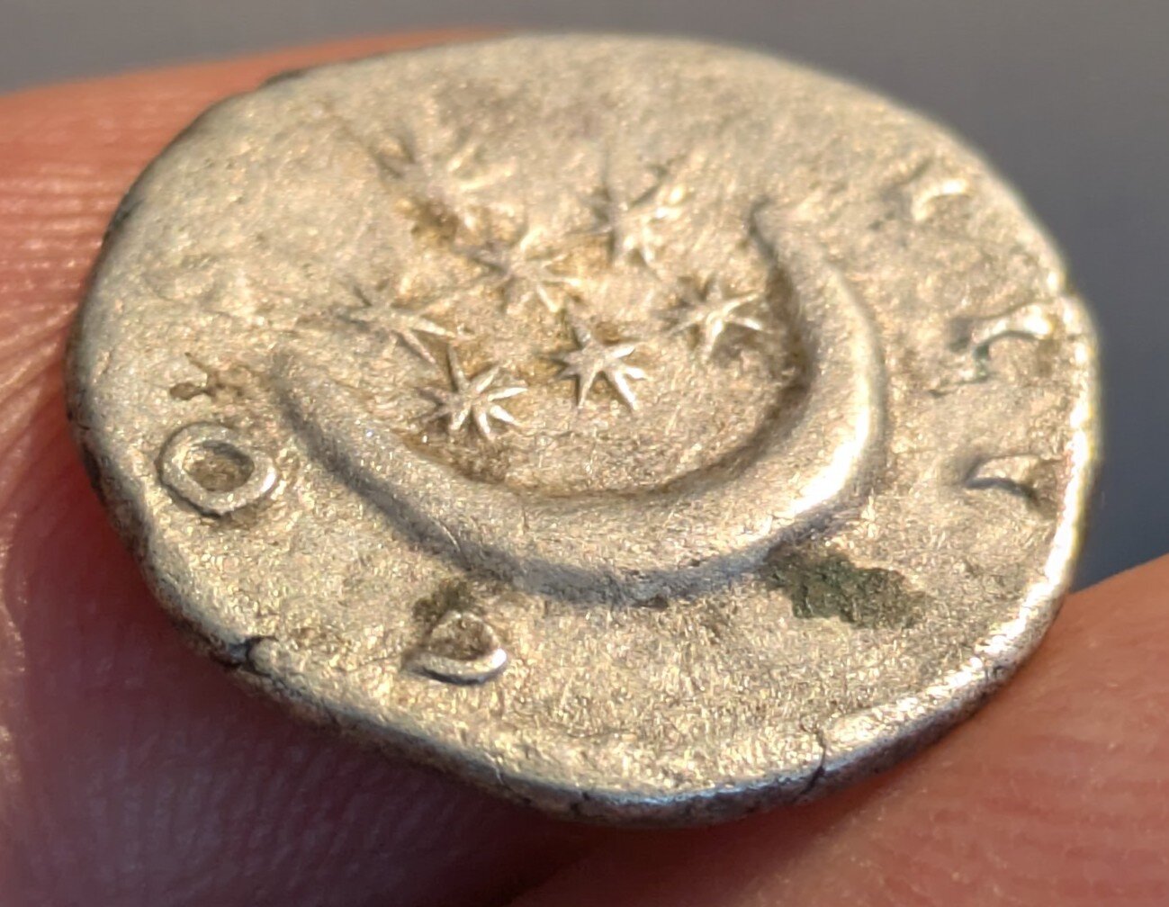 Un denario di Adriano con Crescente e sette stelle complementare a quello del post precedente con Crescente ed una stella.