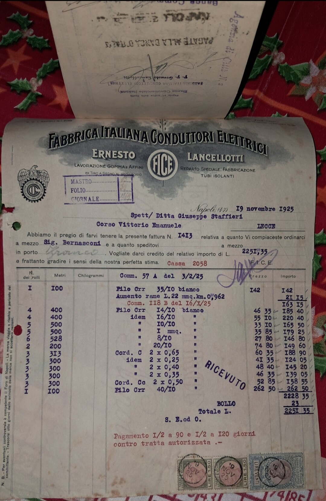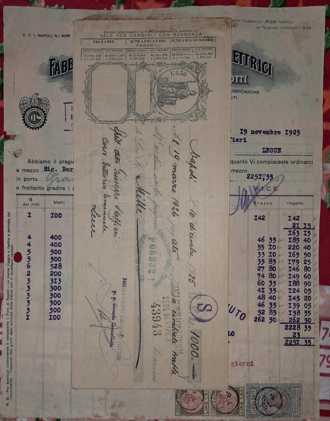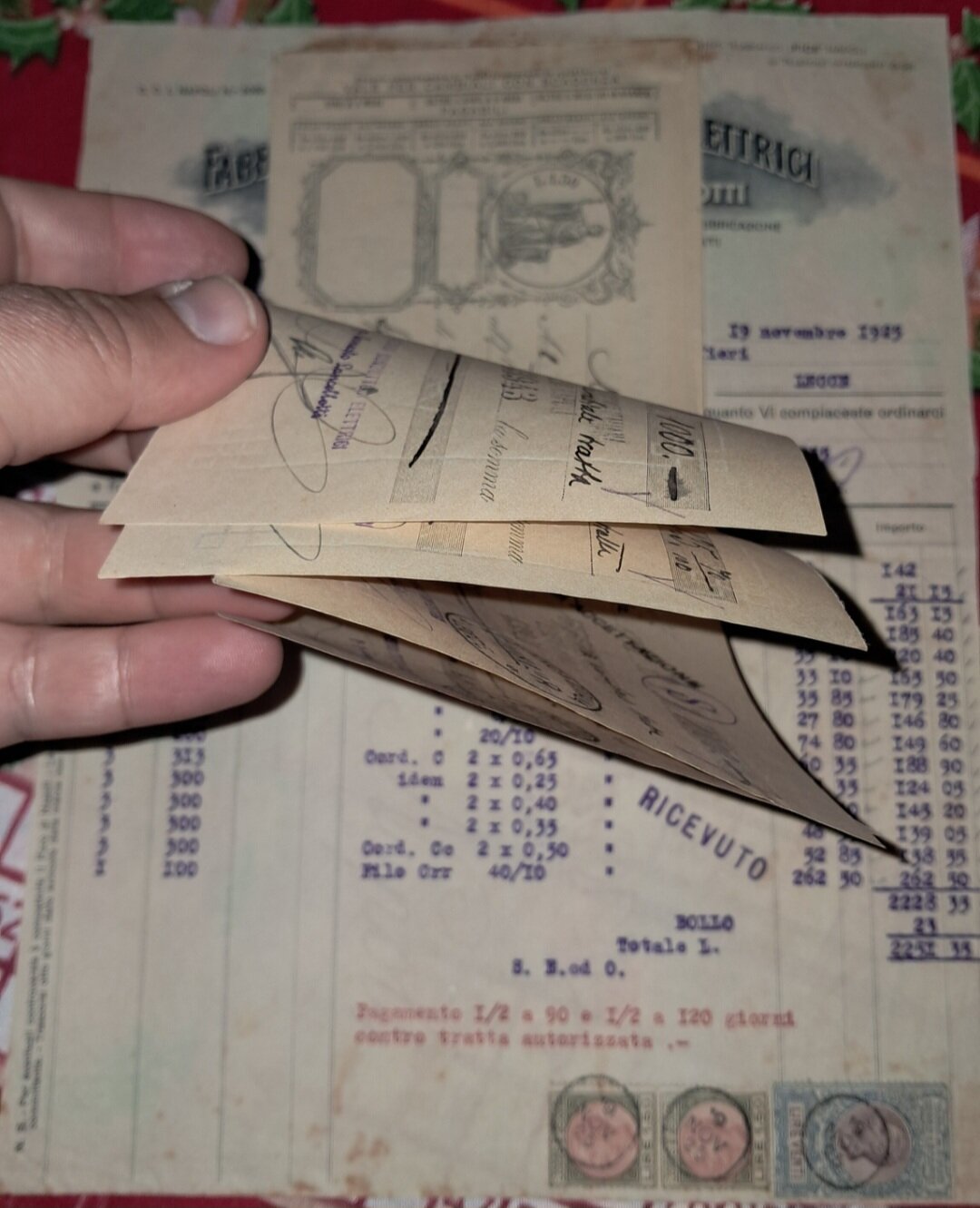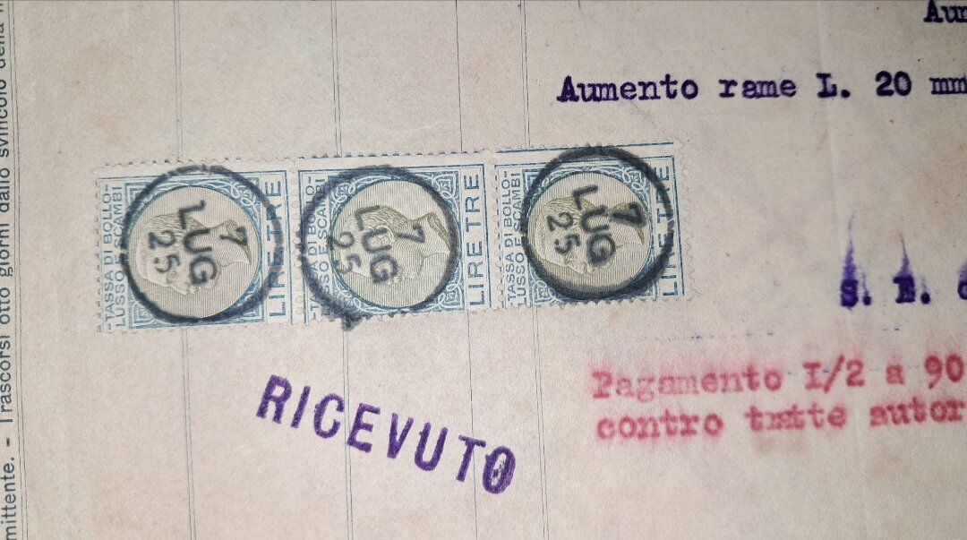 caravelle82 Inviato 1 ora fa #1 Inviato 1 ora fa (modificato) Buona domenica. Oggi ho potuto pescare questo materiale. Quattro pezzi, contenenti anche in allegato delle cambiali o quant'altro. Ci dovrebbero essere molti elementi da studio, oltre i timbri e le tasse di bollo. Questa roba mi ha sempre affascinato, anche perché é anche scritto a mano,oltre che a macchina, come piace far a me ( tipo far i conti 😆). Chi mi sa dare delucidazioni varie su questi tipi di documenti? Vedasi anche la filigrana spettacolare con data e regio stemma delle cambiali allegate, che sono attaccate al foglio principale,sembra con colla (inizialmente pensavo fosse andata la carta ma poi ho capito che era appunto colla). Sono quattro, le numero. Per ora,come consigliatomi da @PostOffice, ne posto solo la metà, la restante parte, ovvero il 3 ed il 4, successivamente. Tra l'altro me le sono aggiudicate a 10 euro. Credo ben spese vista la fattura e le condizioni. Grazie a tutti. N° 1 N°2 Modificato 38 minuti fa da caravelle82