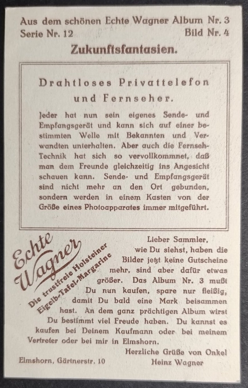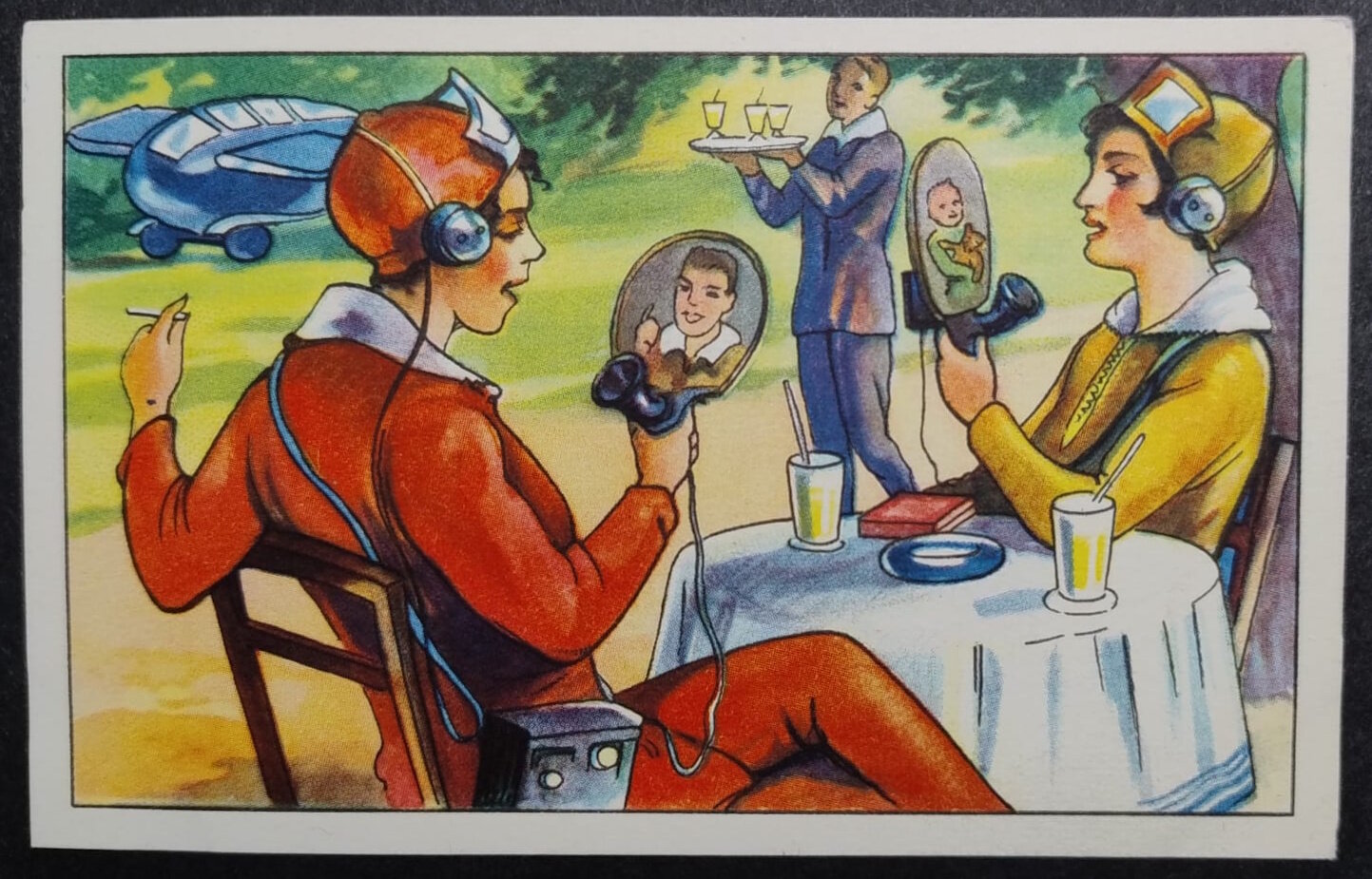 littleEvil Inviato 47 minuti fa #1 Inviato 47 minuti fa Dove si poteva stare belli tranqulli al bar col telefonino, l'aperitivo ed una sigaretta in mano! Ecco una delle prime immagini profetiche che mostrano come già negli anni '30 ci si ignorasse seduti allo stesso tavolino, come queste due elegantissime signorine. E cosa fanno? Ovviamente, non si filano di striscio. Ognuna è incollata al proprio telefonino. Il cameriere arriva con le bibite e sullo sfondo si intravede un aeroplano parcheggiato (a conduzione autonoma?), ma loro niente, perse nel loro piccolo schermo ante litteram. Questi vendevano la margarina (*), ma avevano già previsto che saremmo finiti così: seduti uno di fronte all'altro a guardare un rettangolino luminoso invece di guardarci in faccia. Sarebbe azzeccato se qualcuno 100 anni dopo leggesse questo post sul telefonino, ignorando le persone sedute al tavolo con lui. #Stacchiamo la spina! Njk (*) Margarina Wagner! ===================== https://rarehistoricalphotos.com/futuristic-visions-cards-germany/ 1 Awards