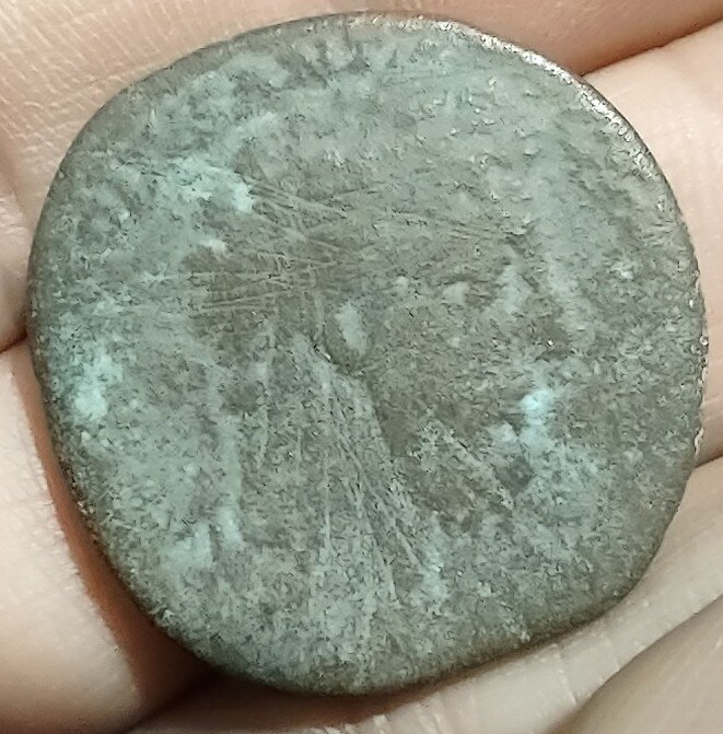 Buonasera, ho in collezione da anni questa moneta, che non sono mai riuscito a identificare. Al rovescio si vede una figura alata o con un mantello che avvolge con le mani qualcosa che sembra essere un globo sospeso su un piede (come se fosse un mappamondo). Al dritto un volto e si intravede qualche lettera, che non riesco a interpretare. Peso 21.4g diametro  tra 28 e 30 mm a seconda delle direzioni. Qualcuno saprebbe aiutarmi? Grazie mille in anticipo
