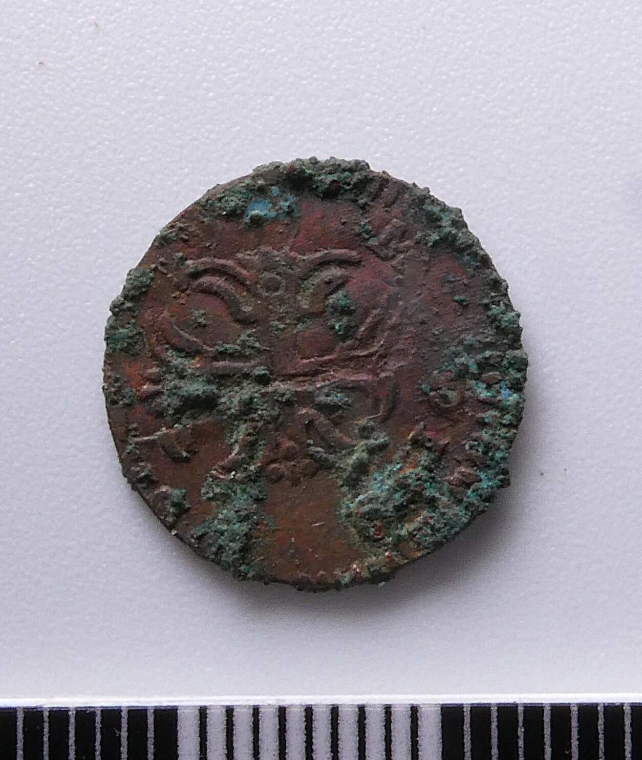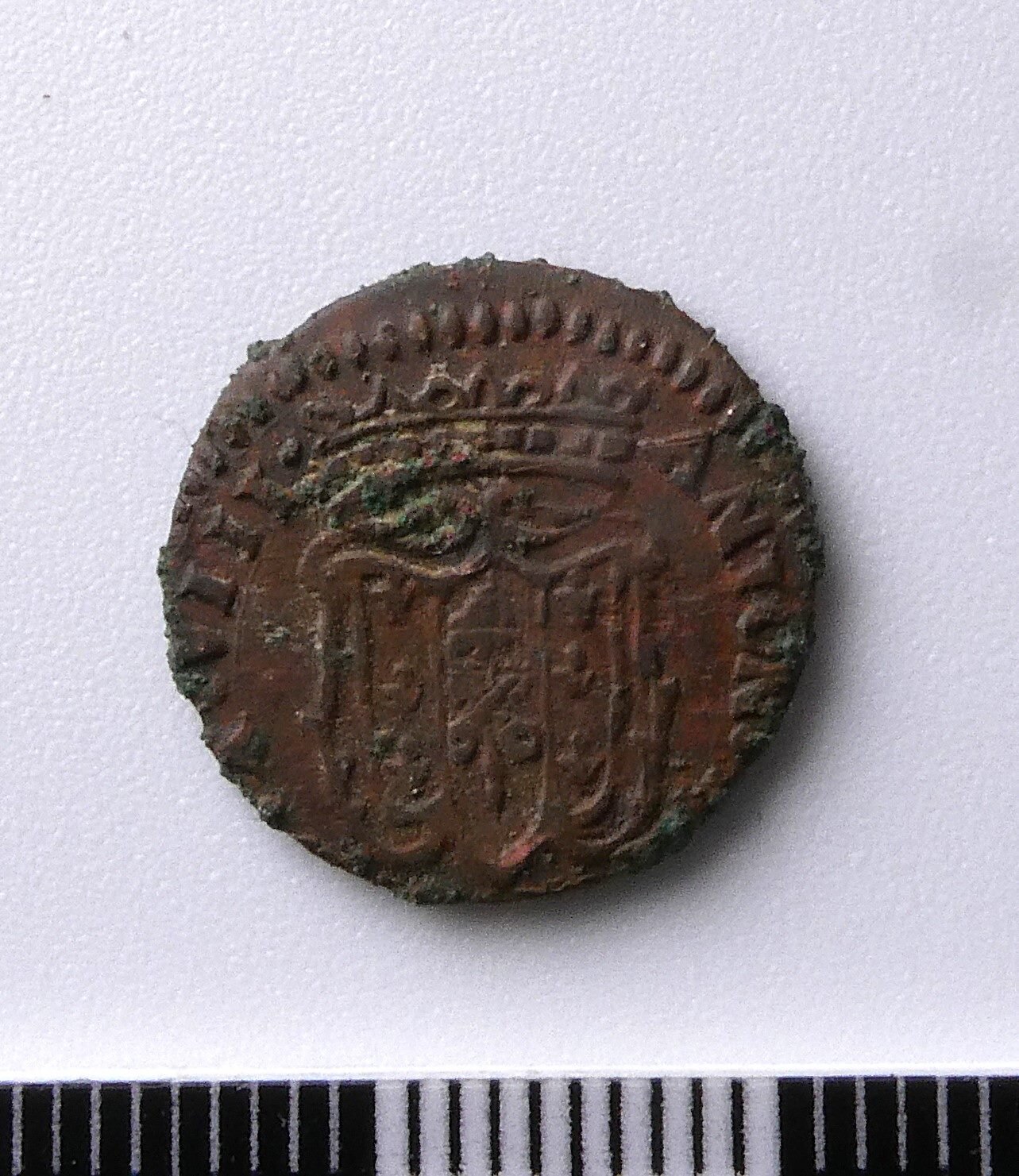 vi propongo questa moneta proveniente da uno scavo archeologico autorizzato, son un archeologo non un numismatico, pertanto lascio parlare chi ne sa più di me. Il contesto di rinvenimento é un vano ipogeo, regione Toscana, Comune di Carrara, se avete necessità di altre informazioni non avete che da chiedere. Dal tipo di patina posso dire che si tratta di rame e non bronzo. Vi ringrazio anticipatamente.