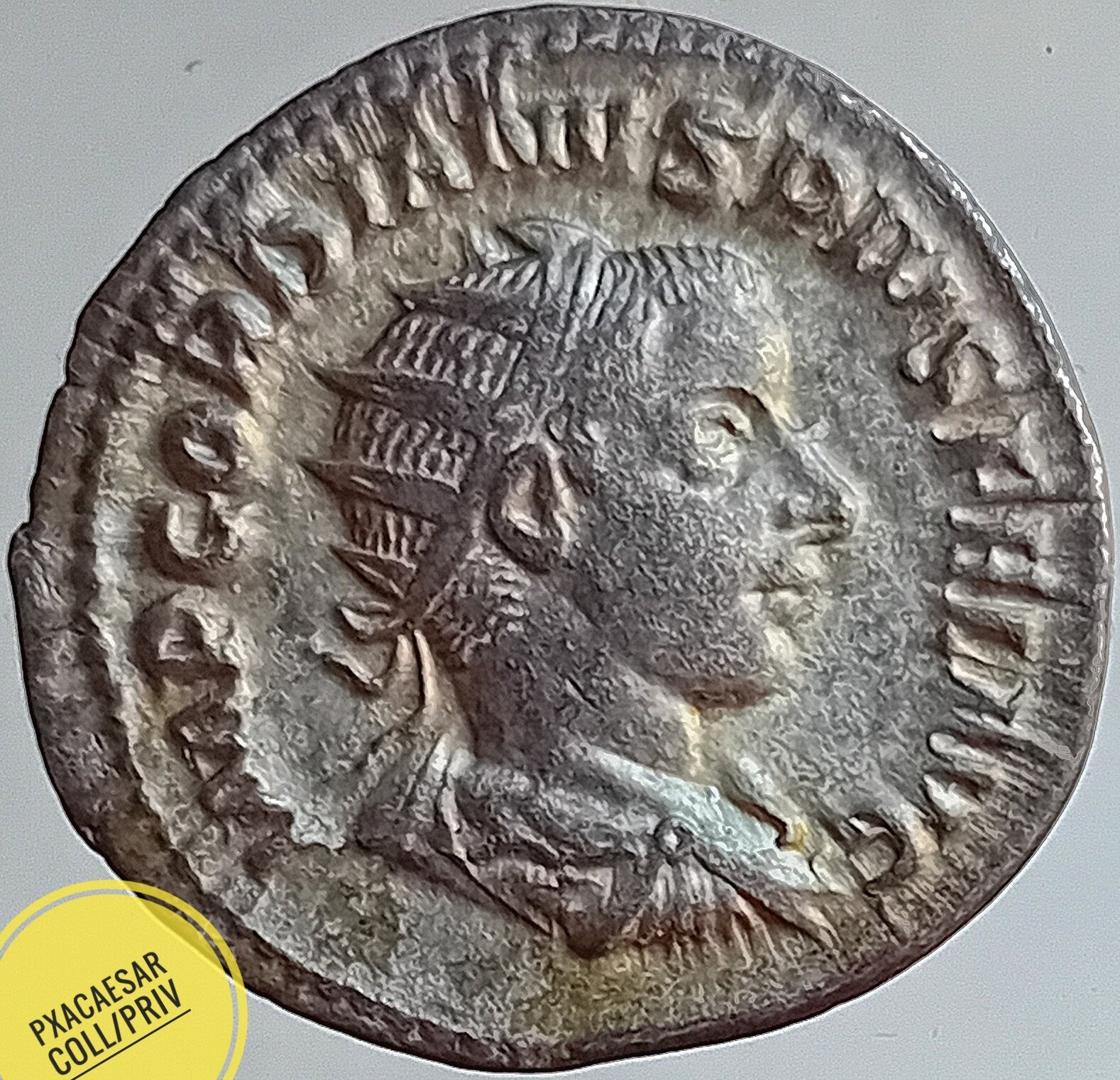 Ciao, per me bello ed interessante antoniniano di Gordiano lll 🙂. Aggiungo a quanto da te già detto che è catalogato con il RIC 84. Di tipologia simile ma con legenda "old nominative" IOVIS STATOR è il mio esemplare che condivido, catalogato RIC 85.