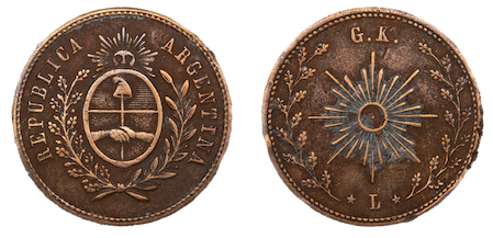 - Sono da considerasi bottoni militari fabbricati per differenti committenti alla fine dell'Ottocento? (Repubblica Messicana (periodo della Repubblica Restaurada 1867-1876), Repubblica argentina (il dritto è molto simile a quello presente sui 1 o 2 centavos argentini degli anni 40), casa Savoia (quindi non sono medaglie quelle illustrate nel sito? )