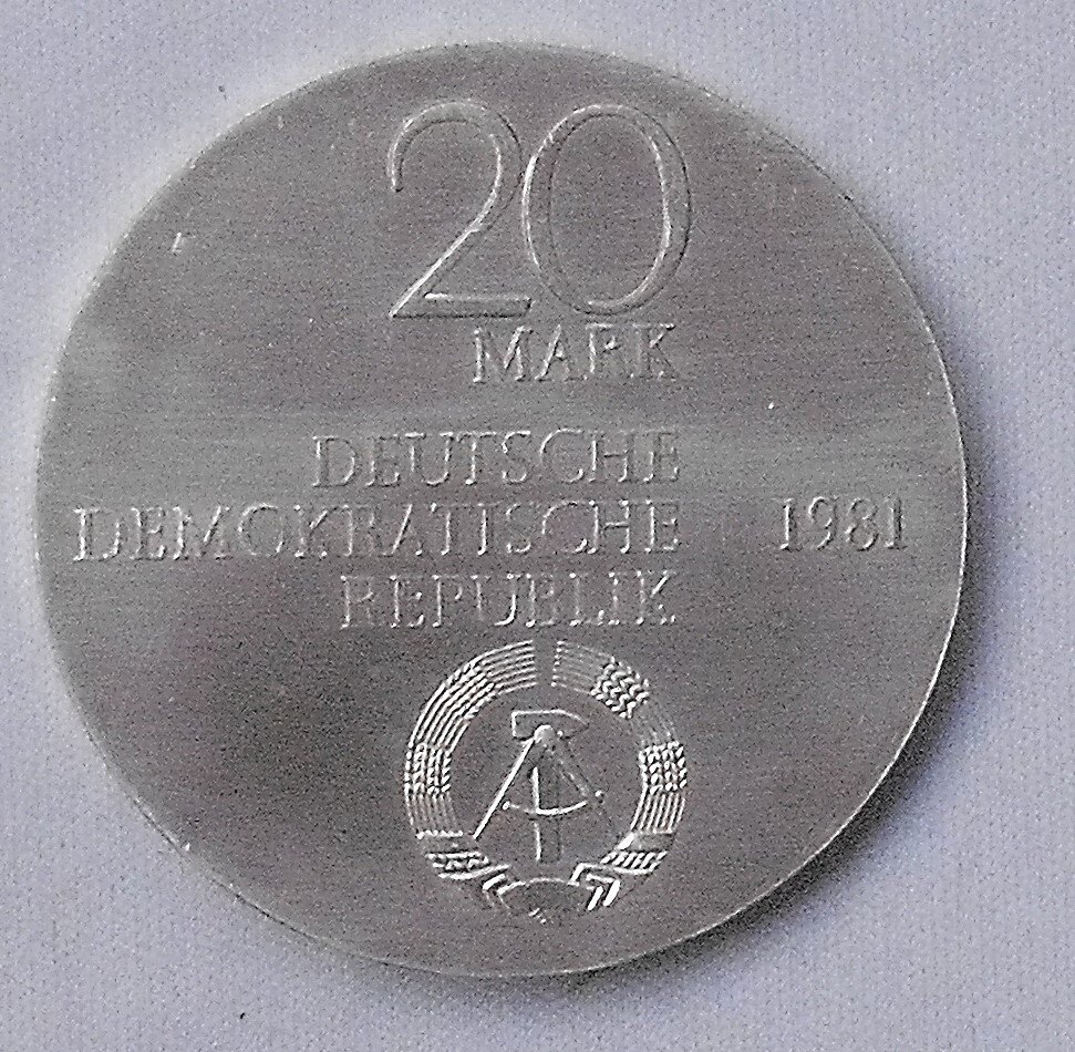 DDR, 20 mark 1981, argento,  39.264 esemplari coniati.