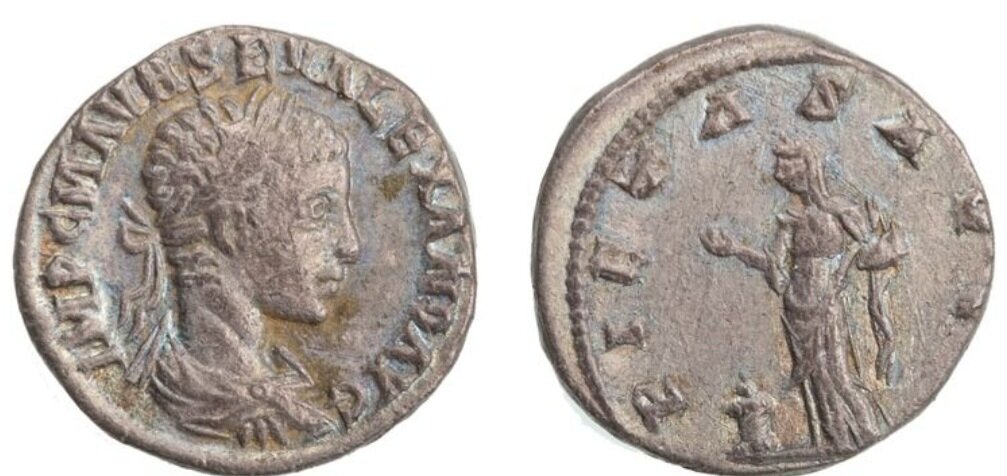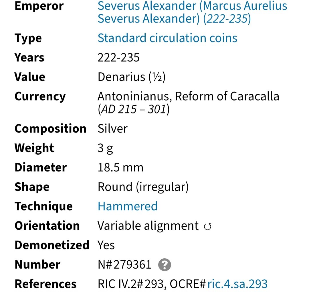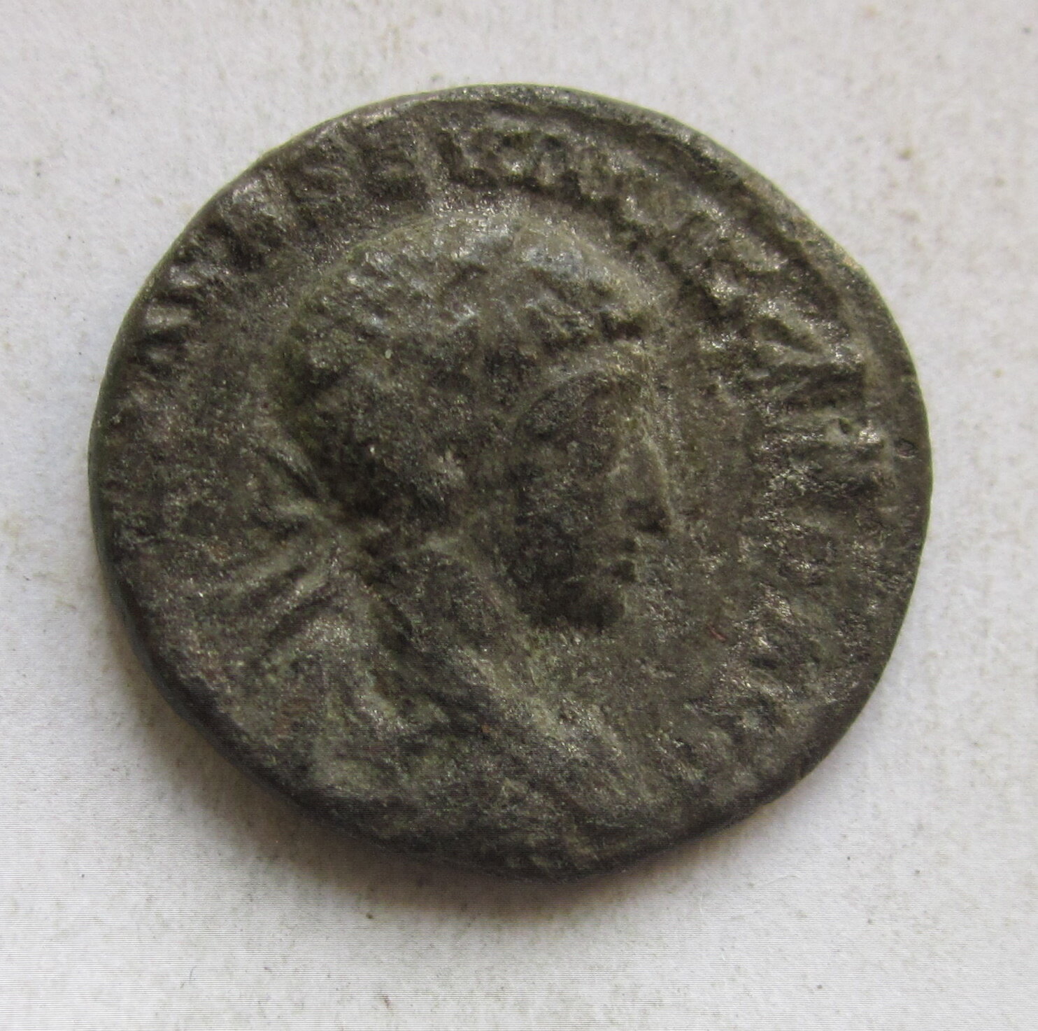 Ciao, il ritratto è senza dubbi quello dell'imperatore Alessandro Severo tipico dei denari coniati nelle officine della Zecca di Antiochia e non di Roma. Se non è d'argento ( tu con moneta dal vivo puoi stabilirlo) potrebbe anche trattarsi di un denario del Limes. Posto foto di esemplare in argento stessa tipologia. Ricambio gli auguri.