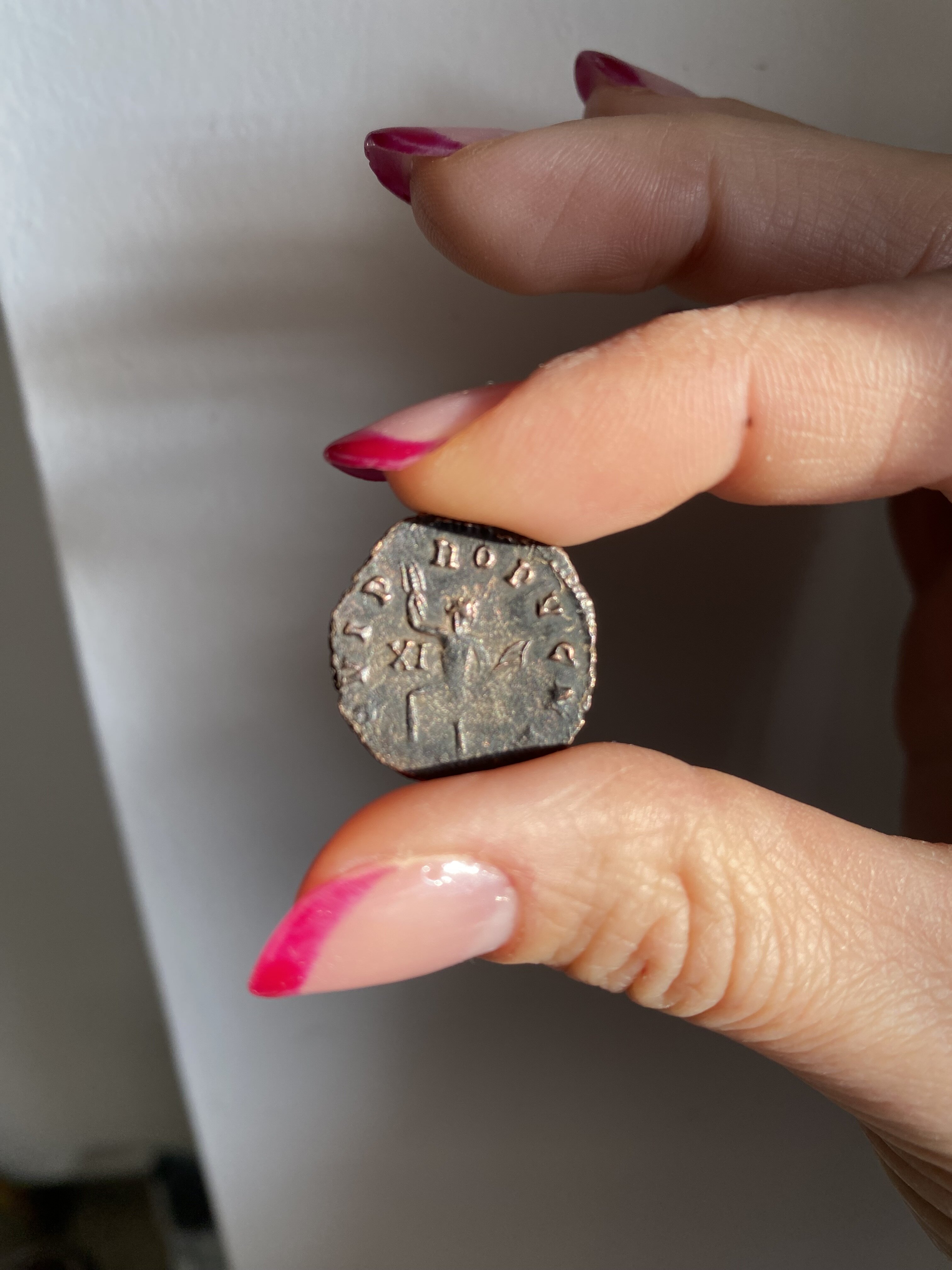 Ciao, dalle foto le monete sono autentiche. Si tratta di due antoniniani dell'imperatore Gallieno e di Tetrico ll. Posto foto di due esemplari stessa tipologia dei tuoi 🙂.