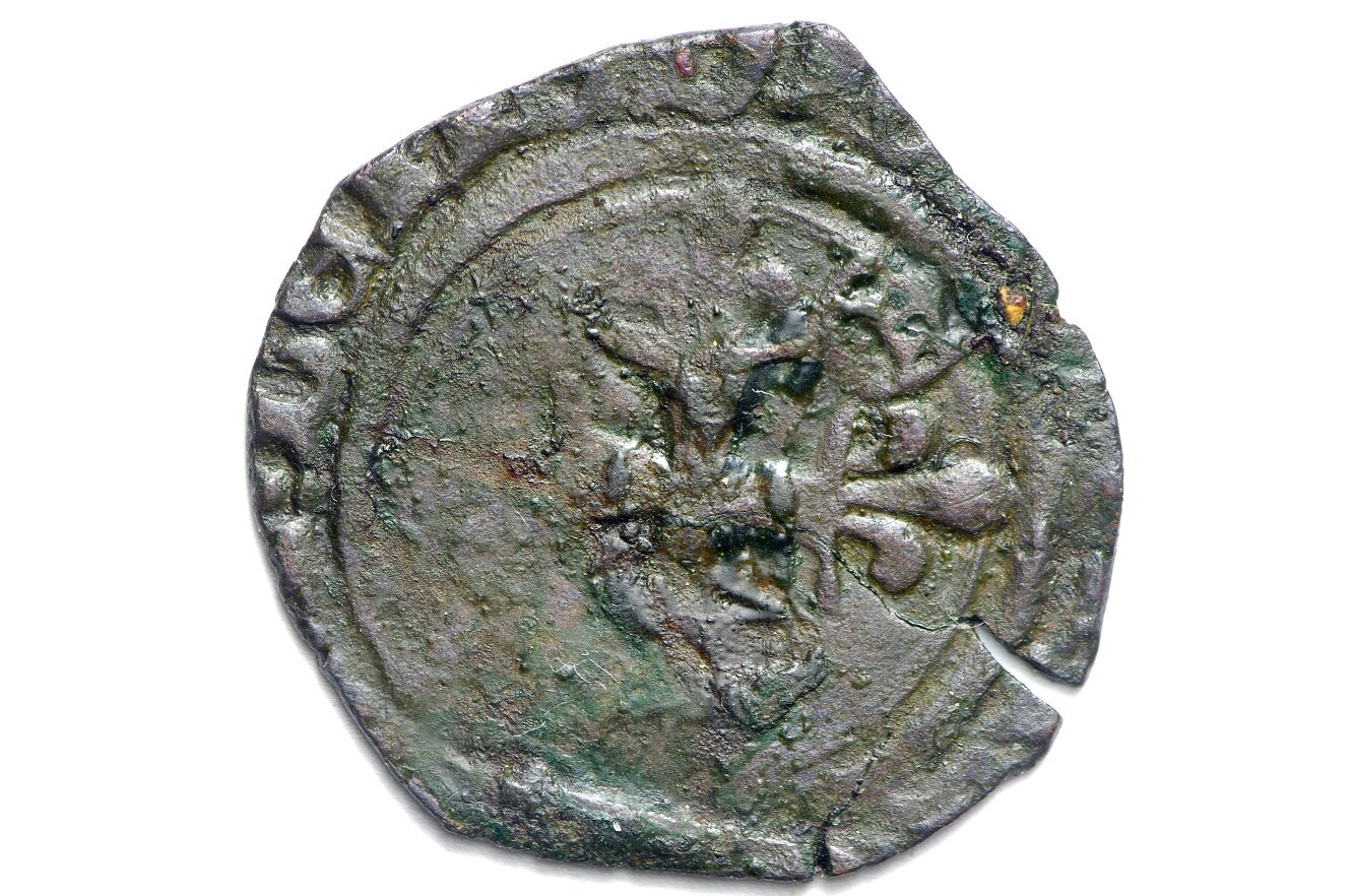 Salve @amoilconio ci manca mezza moneta ma secondo me è un Gros Floret di Carlo VI di Francia.Anche qui ci sono molte varianti.
