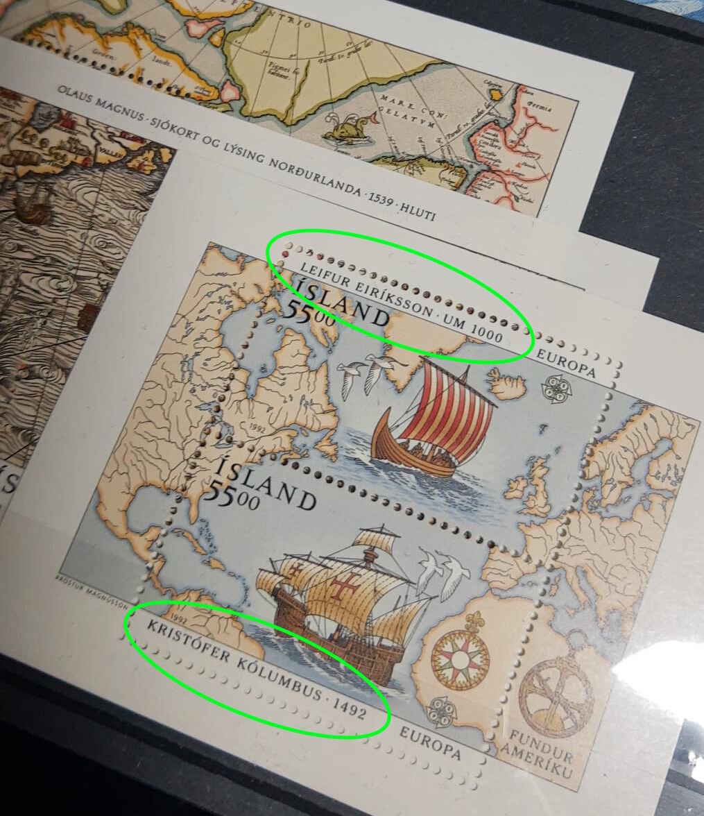 e non posso dimenticare il francobollo-sberleffa emesso per ricordare simpaticamente che l'America l'han scoperta loro: