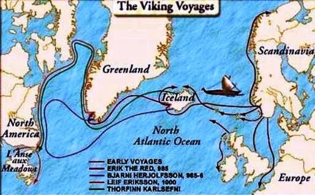 Erik 'il rosso' vichingo di Norvegia ed Islanda, é probabilmente il primo colonizzatore ( A.D. 982 ) della grande isola che chiamerà Groenlandia : isola dalla quale suo figlio Leif Ericson, poco dopo, raggiungerà le coste di quella che poi sarà l'America .