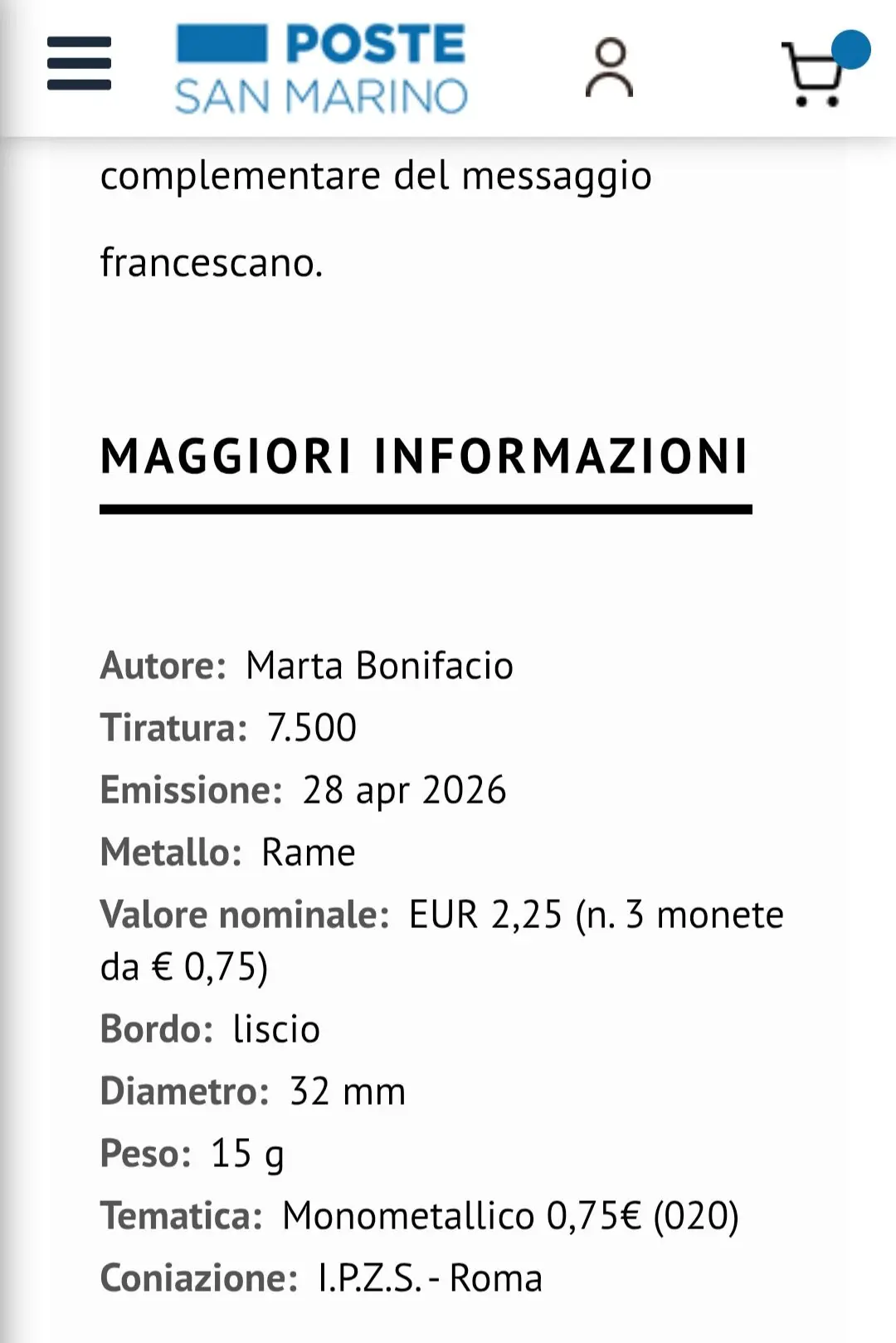 Aretusa Inviato Lunedì alle 17:06 #1684 Inviato Lunedì alle 17:06 Qui il link che ho già postato sul thread di San Marino https://www.dfn.sm/trittico-in-rame-da-0-75-cantico-delle-creature.html Cita