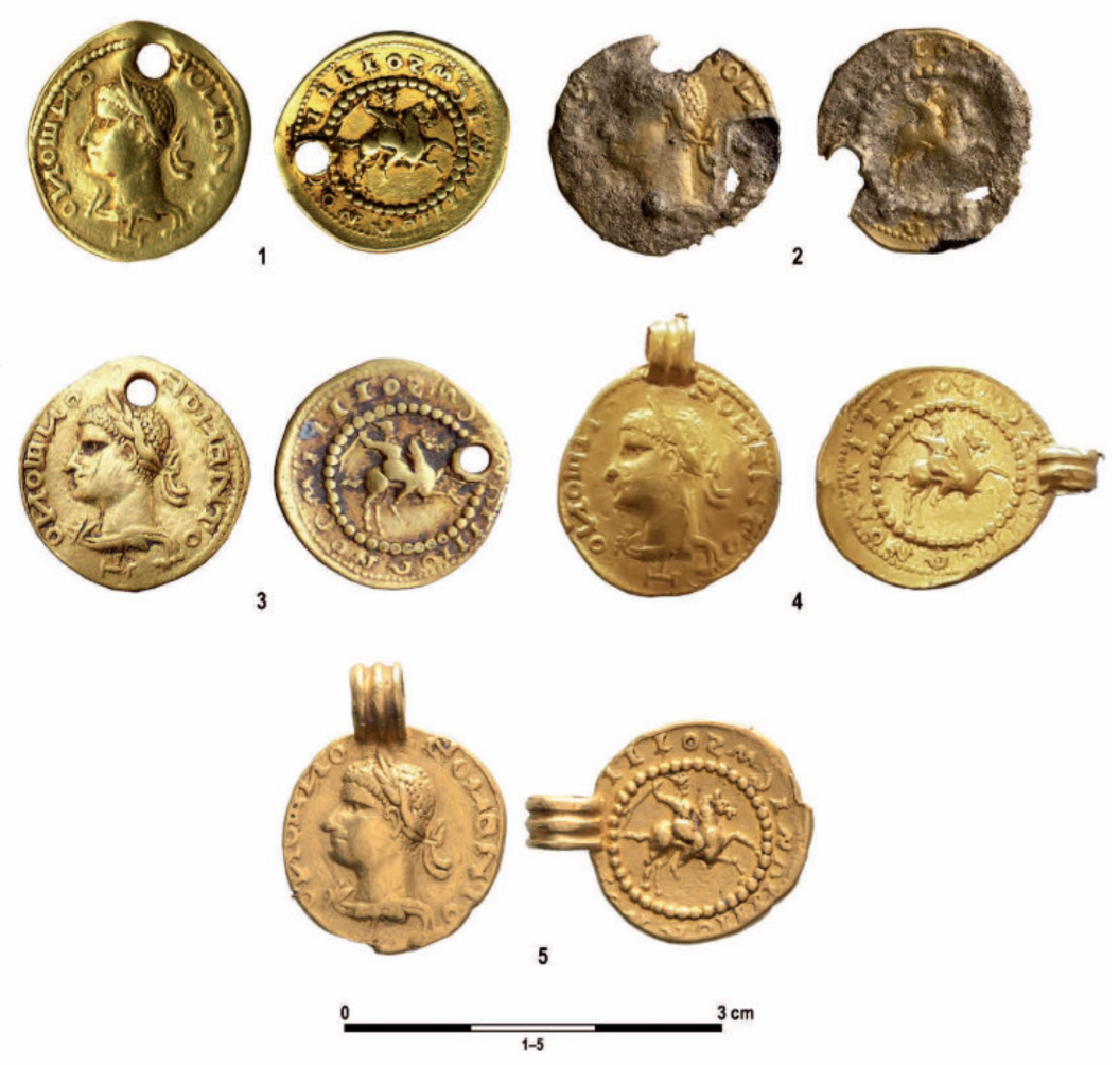 Gold imitations of Roman coins from collection of Hungarian National Museum in Budapest