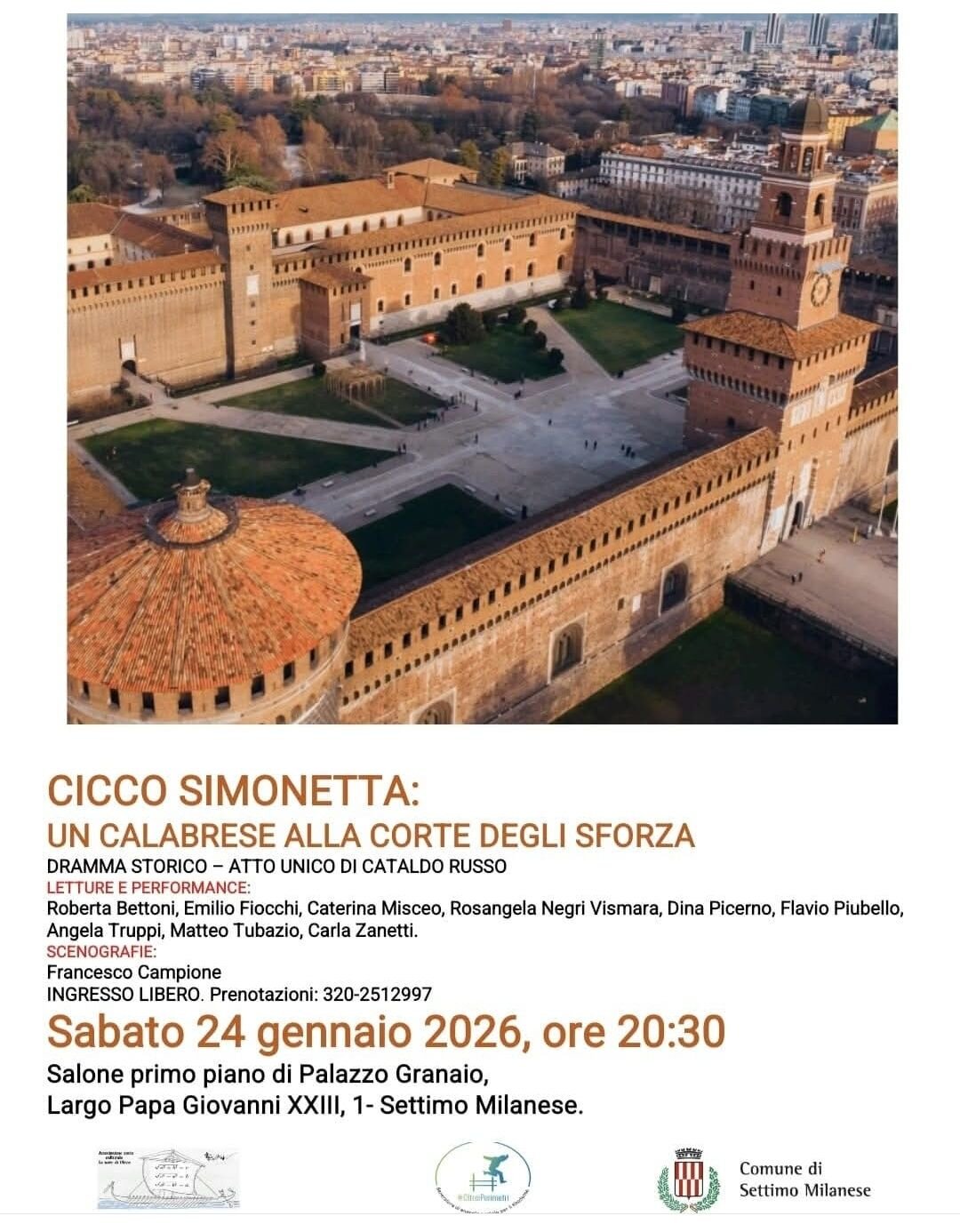 Settimo Milanese sabato 24 gennaio ore 20:30 - "Cicco Simonetta: un calabrese alla corte degli Sforza" Dramma storico in atto unico.