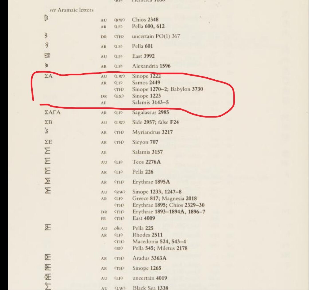Così come andando nella leggenda a consultare i riferimenti dei monogrammi non trovo molti dei numeri che cita come esempio. ( Faccio uno screen evidenziato per farmi capire, per esempio Sinope n. 1222 non lo trovo nella numerazione con immagini più avanti nel trattato).
