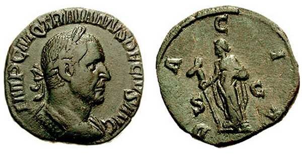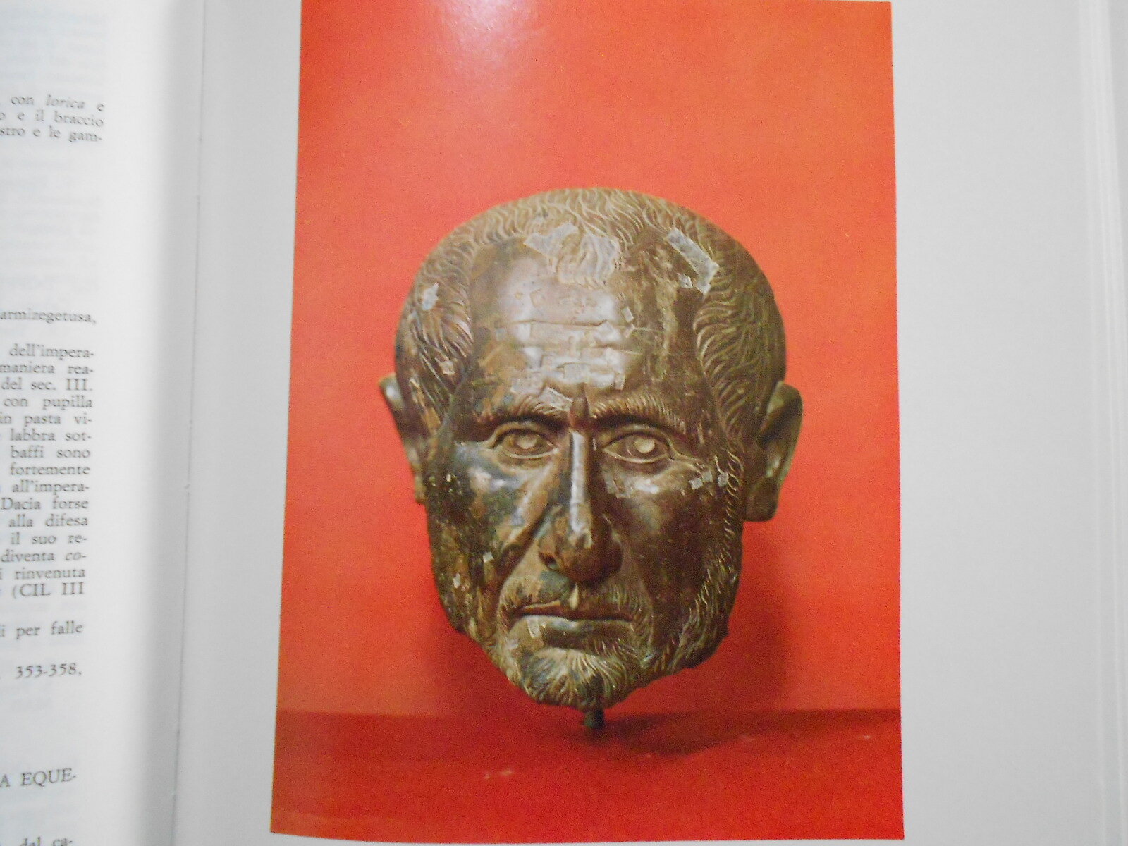 In foto la testa di Traiano Decio , presa da un vecchio libro del 1970 e una moneta bronzea di Sesterzio di Traiano Decio con la DACIA , giusto per rimanere in argomento , per la visione del profilo da paragonare con la testa presa sul davanti .