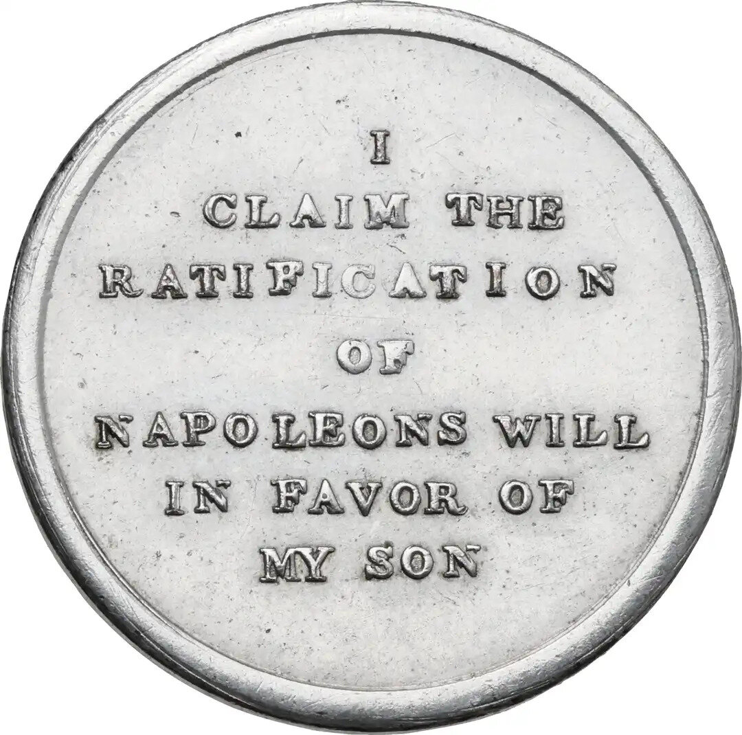 In tale contesto si può inquadrare questa medaglia in cui si chiede la ratifica del testamento di Napoleone a favore del figlio immagino sottintendendo il suoi diritti dinastici. Va detto comunque che il vero testamento di Napoleone poco riportava in merito se non la raccomandazione al figlio di non dimenticarsi mai di esser nato "principe francese".