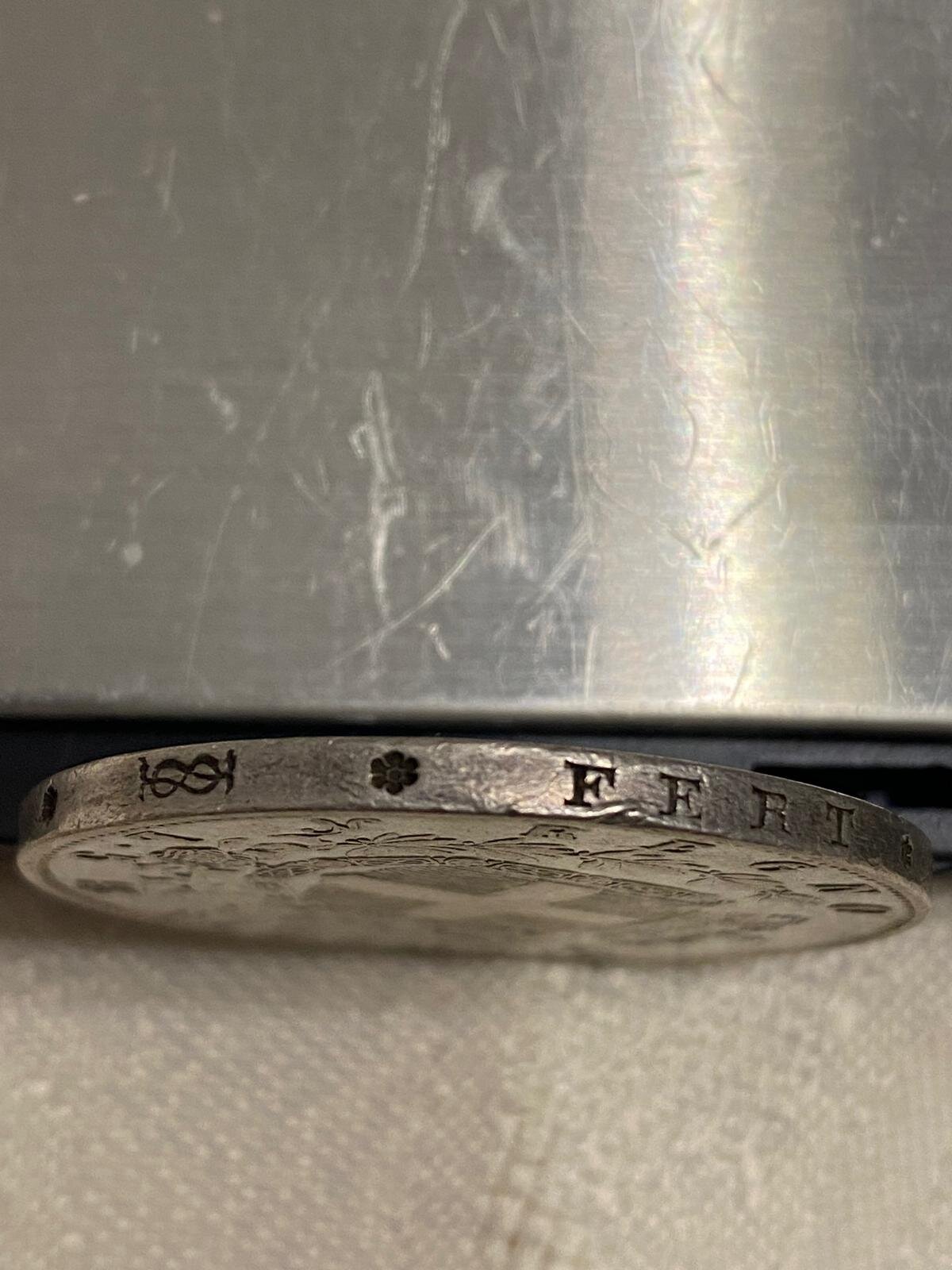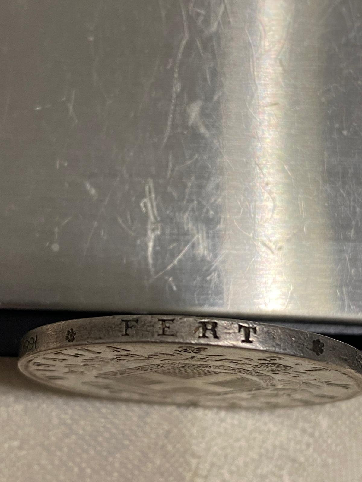 la moneta presenta rilievi ancora buoni, in area BB, ma è deturpata da numerosi segni (graffi e hairlines, alcuni colpetti al bordo), oltre che da quei buchi, il che rende meno gradevole l'insieme.