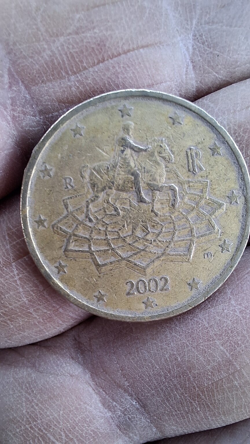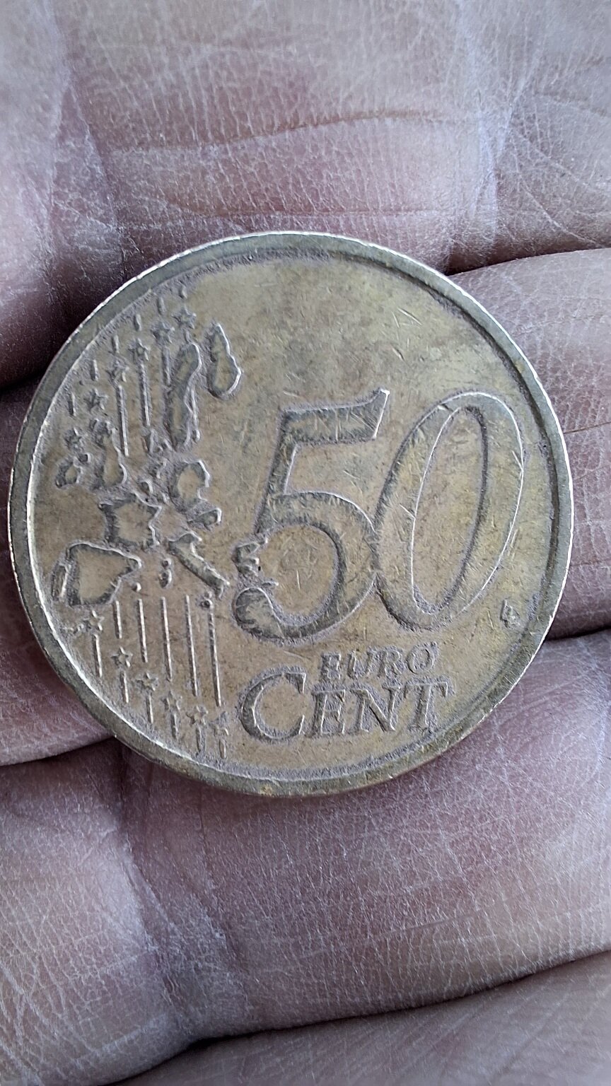 vale esattamente 50 centesimi di euro. come potrà notare svuotando il portamonete, è estremamente comune, nel 2002 è stata coniata in 1.136.418.000 esemplari (1,13 miliardi di pezzi)