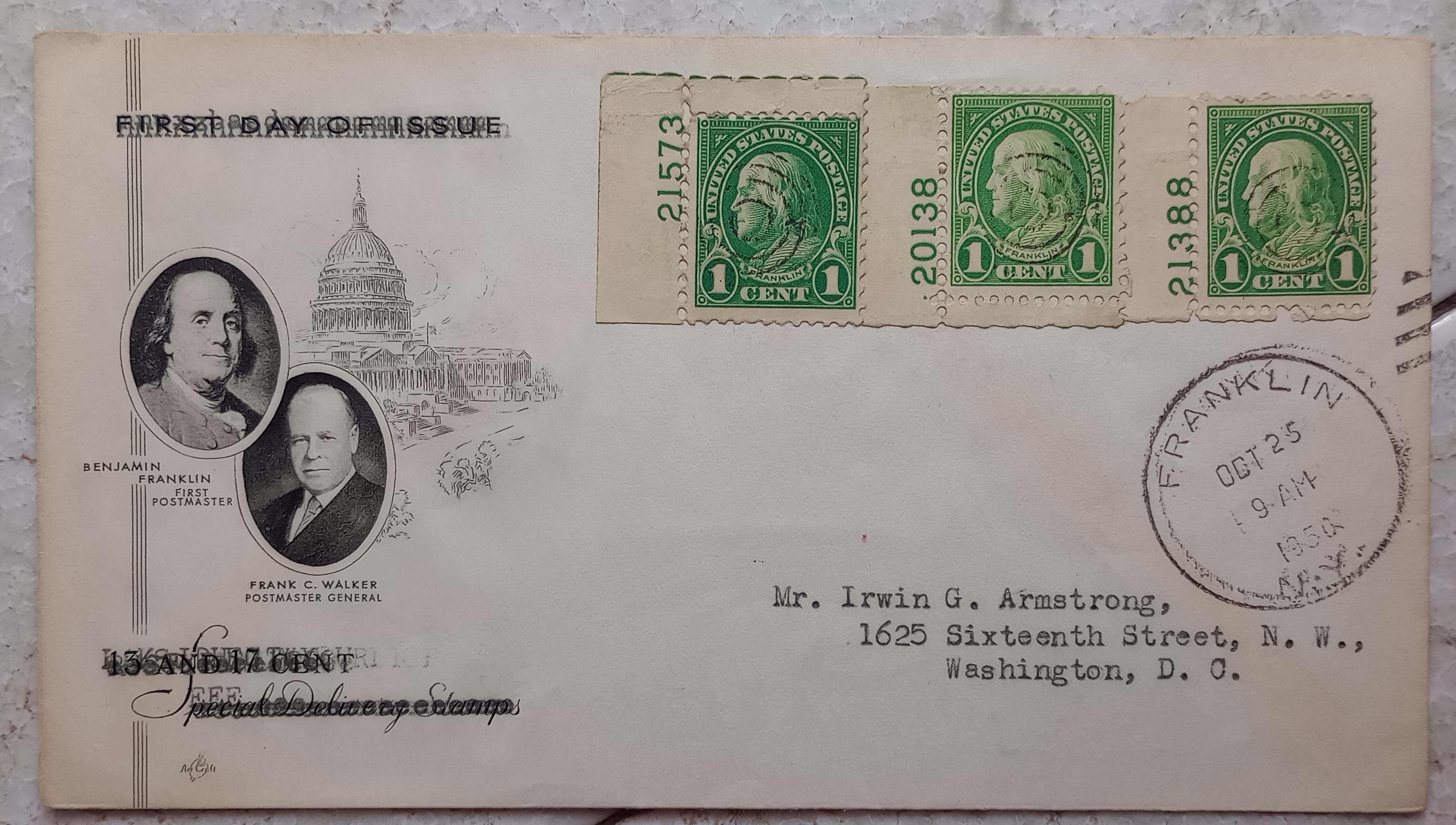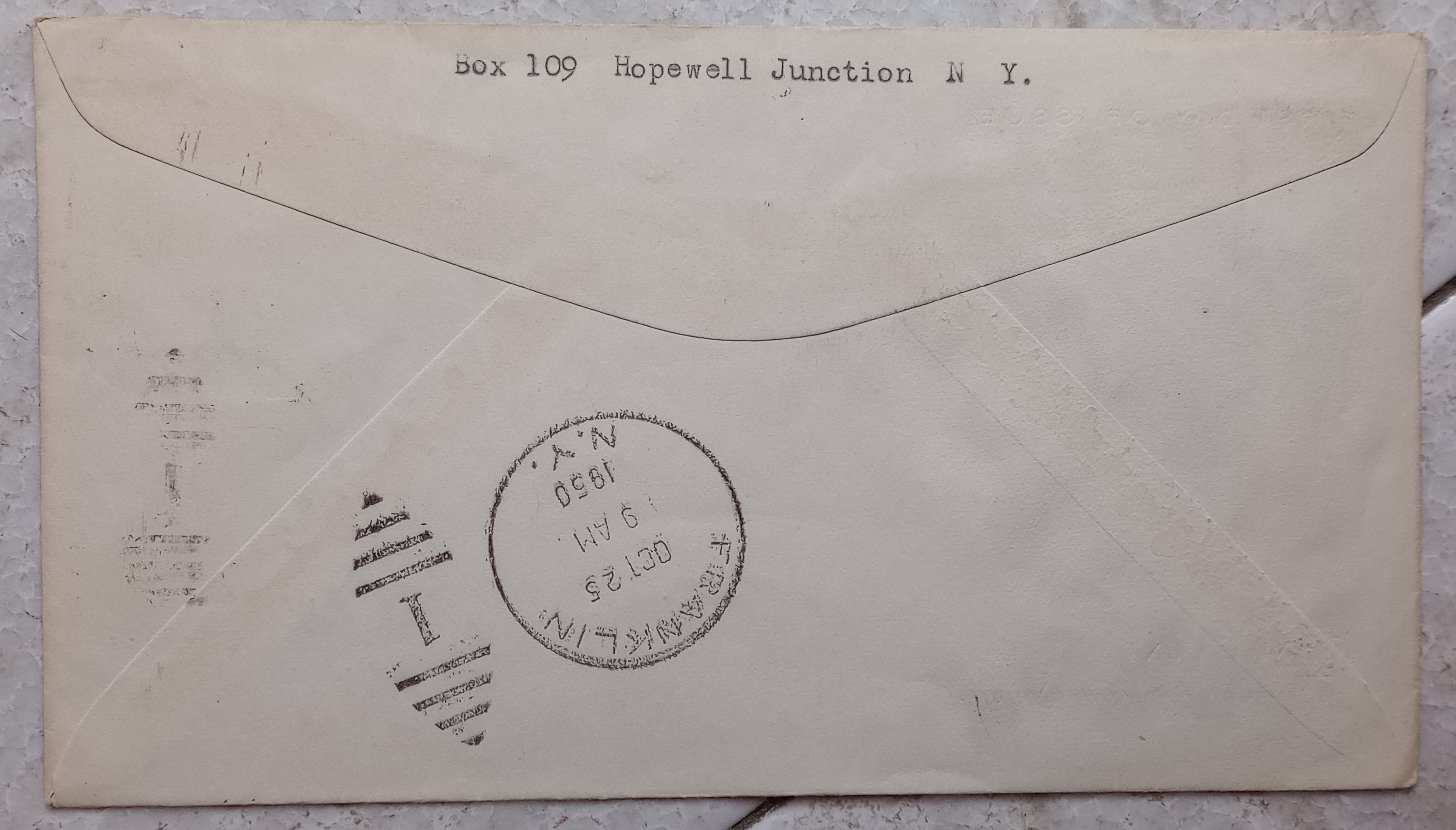 PostOffice Inviato 5 minuti fa #4 Inviato 5 minuti fa (modificato) I Francobolli non sono coevi agli annulli. Su questa busta FDC si è voluto creare un pastrocchio, ...la busta non ha viaggiato da Franklin nel Delaware stato di New York a Washington D.C. il 25 ottobre 1950 con quei francobolli Franklin di diverse annate 1923,1927 ecc... Infatti non sono neanche annullati dal cerchio singolo di Franklin del 1950 ma hanno annulli coevi dell' epoca di quelle emissioni anni 20 30 del 900. Credo sia una creazione artigianale postuma di qualche buontempone che ha voluto creare un assurdo filatelico. Credo che neanche l'annullo cerchio singolo di Franklin sia autentico, infatti ne compare un altro non nitido decentrato sotto. Mah non saprei che altro dire, i francobolli sono autentici ma l' insieme non lo e'. Modificato 4 minuti fa da PostOffice