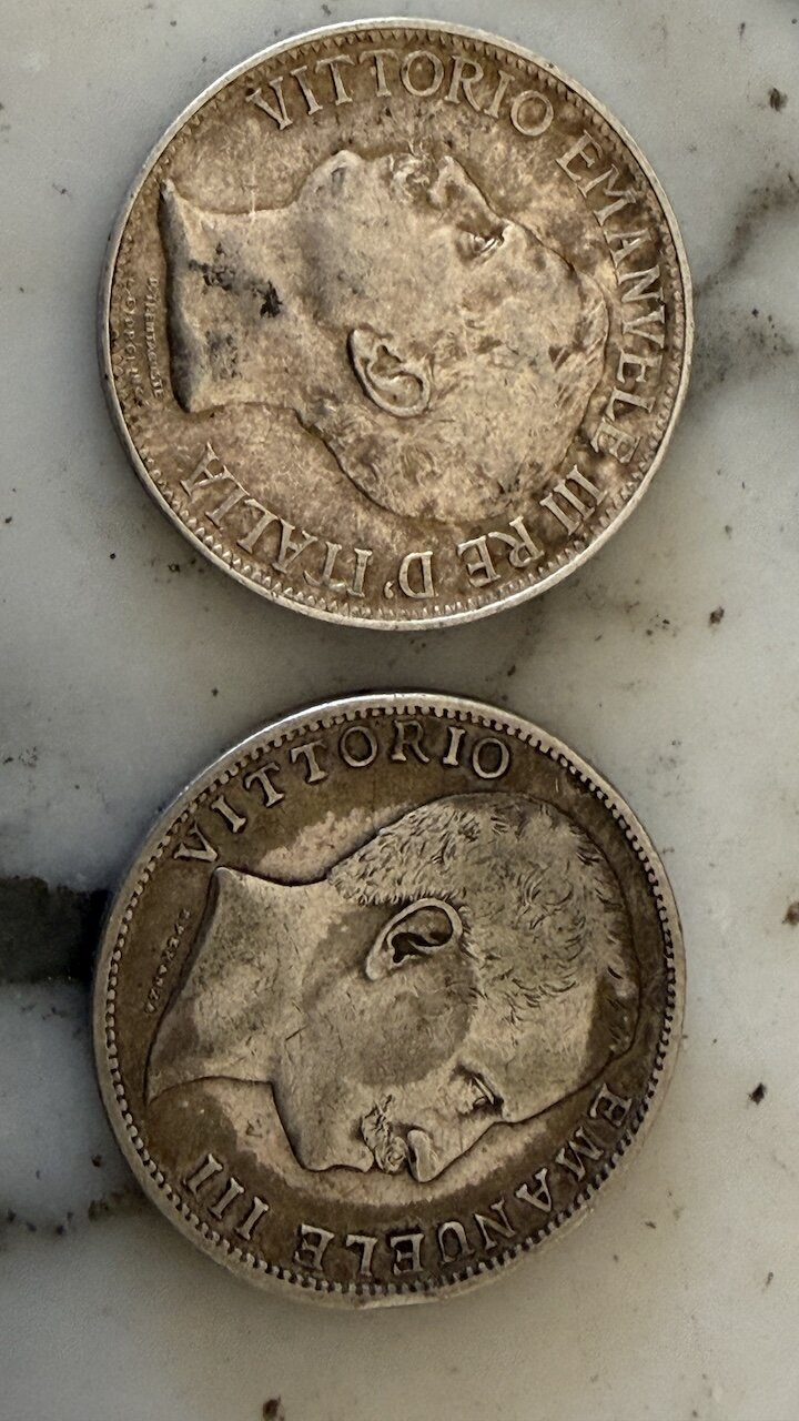 Anto63 Inviato 1 ora fa #1 Inviato 1 ora fa Buonasera Sareste cosi gentili da dirmi grado di conservazione di queste due monete ? pesano L2 1861/1911 g.10.04 diametro 27mm Lire 2 1907 pesa 9,91 g. diametro 27 mm Grazie Cita