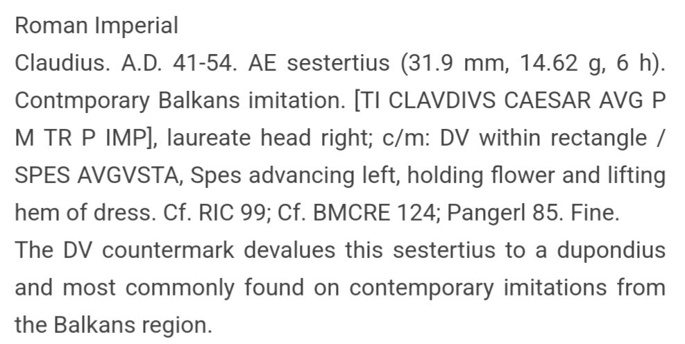 Pxacaesar Inviato 44 minuti fa #3 Inviato 44 minuti fa (modificato) Ciao, molto più che probabile quanto detto nel suo intervento da @FlaviusDomitianus. Tuttavia il ritratto mi ricorda più che la fisionomia dei Flavi quello dell'imperatore Claudio. Cercando assi e dupondii a suo nome per comparazione con la moneta in discussione ho trovato diverse monete che in peso, diametro ed a mio avviso anche nel ritratto corrispondono a quello del post. Vengono definiti come sesterzi di imitazione emessi in area balcanica successivamente contromarcati e declassati a dupondii ( forse per il peso scarso). Quindi nel dubbio tra sesterzio ed asse potrebbe essere un dupondio🙂 ? Posto foto di esemplare comparato a quello della discussione sperando di coinvolgere anche altri con le loro impressioni . Modificato 39 minuti fa da Pxacaesar Cita