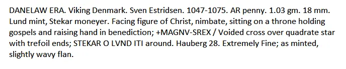 VALTERI Inviato 2 ore fa #1 Inviato 2 ore fa (modificato) Da Lund nella Scania svedese, un attraente esemplare di penny per Sven II Estridsen, ultimo re vichingo in Danimarca : al diritto Cristo in trono di fronte ed al rovescio croce ornata . Sarà a giorni, il 25 Marzo, in vendita Davissons 45 al n. 198 . Modificato 2 ore fa da VALTERI Cita