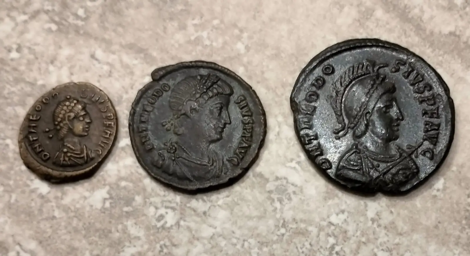 azaad Inviato 3 ore fa #1 Inviato 3 ore fa Vi presento alcune delle più recenti entrate nella mia collezione. Uni degli obiettivi della mia collezione è che le monete che la compongono possano rappresentare alla meno peggio i nominali che avevano a disposizione i nostri antenati in un ben definito contesto storico. Nel caso in oggetto ritroviamo la moneta corrente in rame alla fine del IV secolo, a seguito della riforma monetaria di Teodosio, Graziano e Valentiniano II: La riforma introdusse una monetazione enea basata su 3 nominali (durante il regno di Valente e Valentiniano ne era rimasto in circolazione solo 1, il centennionale da 3 grammi e di diametro di circa 18 mm). Il nominale minore è il cosiddetto nummo, una monetina più piccola del nostro centesimo, del peso di circa 1.1-1.3 g e valore ipotizzato di 6.000 Denari di conto. La moneta immediatamente più grande è il centennionale, con dimensioni simili a quella della nostra monetina da 2 centesimi (18 mm), peso tra i 2 e i 3 g e valore ignoto. Ed infine abbiamo la moneta più grande, che dai pochi documenti arrivati fino a noi doveva avere il nome di decargiro, del peso medio di circa 4.4 g e delle dimensioni simili a quelle del nostro Euro (22-23 mm) e valore nominale anch'esso ignoto, ma ipotizzato in 10 nummi per via del nome. Ovviamente le tipologie in circolazioni non erano solo queste. Ve ne sono state altre, tutte molto interessanti ed esplicative del periodo storico che si viveva. Tuttavia i nominali in circolazione durante il regno di Teodosio e durante i primi anni del regno dei figli dovrebbero essere solo questi 3. Poi gradatamente per motivi non perfettamente noti i nominali maggiori furono messi fuori corso (i tentativi di reintrodurli furono sparuti e poco fortunati fino alla riforma di anastasio alle soglie del VI secolo) e rimase in giro solo in minuscolo nummetto, la moneta principe del V secolo. Tornando alle singole monete, oggetto di questa collezione per nominali: Abbiamo: 1 nummo Teodosio Securitas reipublice RIC IX 26b Ex artemide 31 lotto 733 1 Centennionale concordia Auggg Ex Naville RIC IX 44 b numismatica 99 lotto 983 1 decargiro Gloria romanorum RIC IX 11c Ex numismatic Naumann Asta 154 lotto 866 Nei prossimi mesi/anni, spero di aggiungere al gruppetto anche un argento. 3 Cita