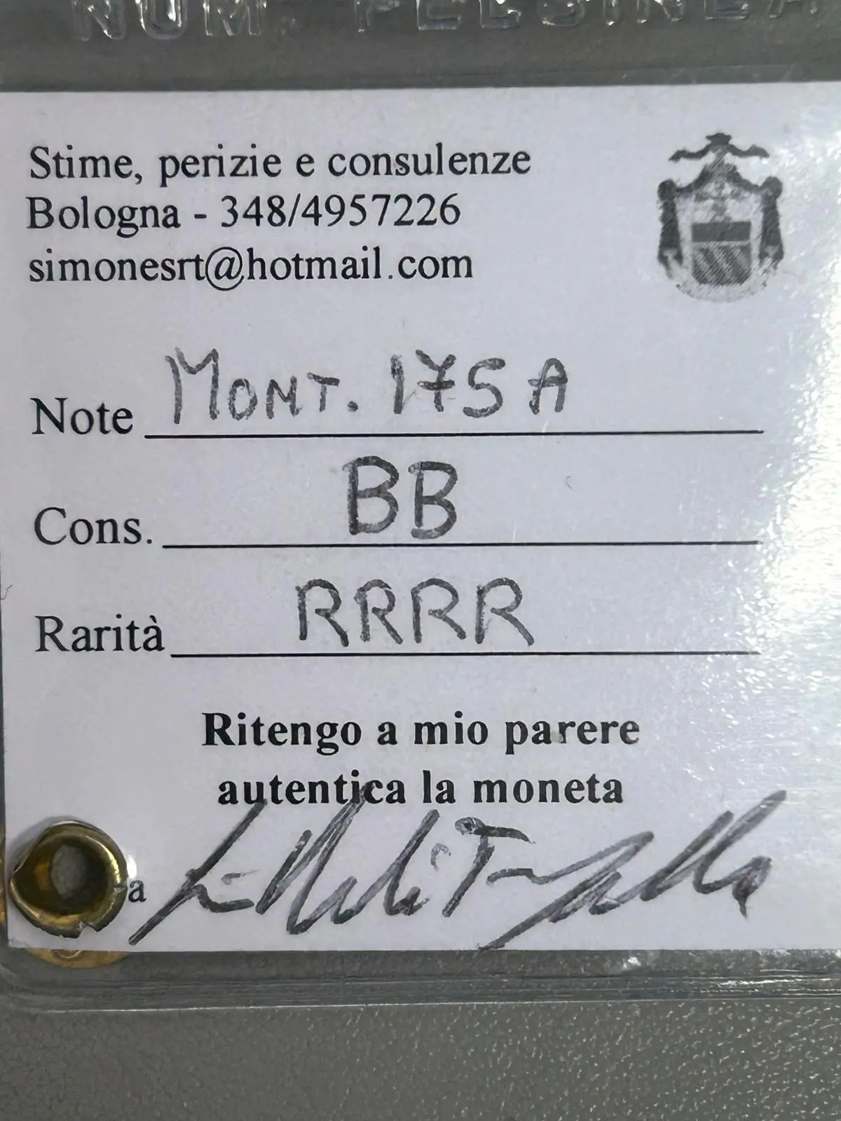 simoned Inviato 23 Marzo Autore #25 Inviato 23 Marzo Vedo che la discussione si è scaldata parecchio e mi dispiace che i toni siano diventati così taglienti. Da profano, io mi sono limitato a riportare quanto scritto su una perizia ufficiale di un professionista NIP, che riporta BB e R4 (Montenegro 175A). Mi sembra di capire che qui molti di voi non siano d'accordo né con il grado di conservazione né con la classificazione del catalogo, ma resta il fatto che un perito autorizzato ci ha messo la firma e il sigillo. Vi ringrazio comunque per avermi dedicato del tempo. Mi è chiaro che per alcuni di voi questa moneta vale poco o nulla, mentre per il perito e per il catalogo Montenegro ha una sua precisa identità e rarità. Terrò conto di entrambi i punti di vista, ma per ora mi fido della certificazione professionale che accompagna l'oggetto. Grazie a tutti. Cita