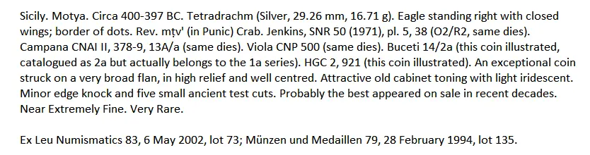 VALTERI Inviato 4 ore fa #1 Inviato 4 ore fa Da Mozia di Sicilia, un " very rare ",vistoso esemplare di tetradrammo con al diritto aquila stante, e leggenda ed al rovescio granchio . Sarà a giorni, il 9 Aprile, in vendita Astarte 26 al n. 69 . Cita