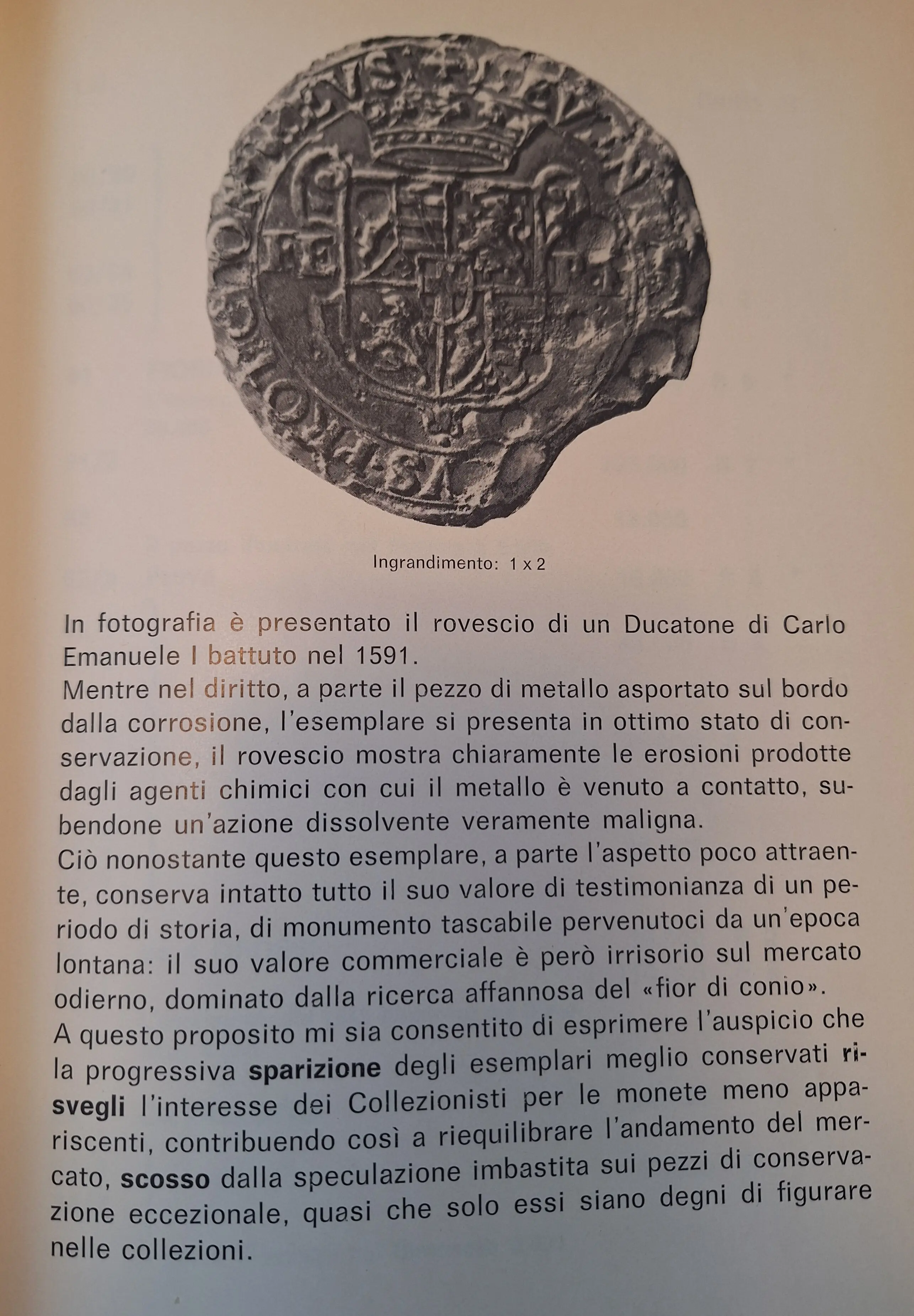 savoiardo Inviato Lunedì alle 12:04 Supporter Autore #9 Inviato Lunedì alle 12:04 44 minuti fa, dux-sab dice: poi, invecchiando, e deluso e schifato da come il collezionismo si sia ridotto alla ricerca del gradino in più di conservazione Sinceramente non mi tocca questo, ogni collezionista può ricercare quello che vuole, io vado avanti come ho iniziato, certo, le monete belle piacciono più delle brutte, ma la smania sulla perfezione non mi tocca... Già tanti anni fa nel mio iniziare il collezionismo numismatico comprando il volume del Barzan (il prezzario delle monete di casa savoia) ero rimasto colpito da ciò che aveva scritto, e che allego a questa discussione per cronaca, e ho sempre cercato di seguire quella via... Sono passati 56 anni dalla pubblicazione, ma non è cambiato nulla da allora... 6 Cita