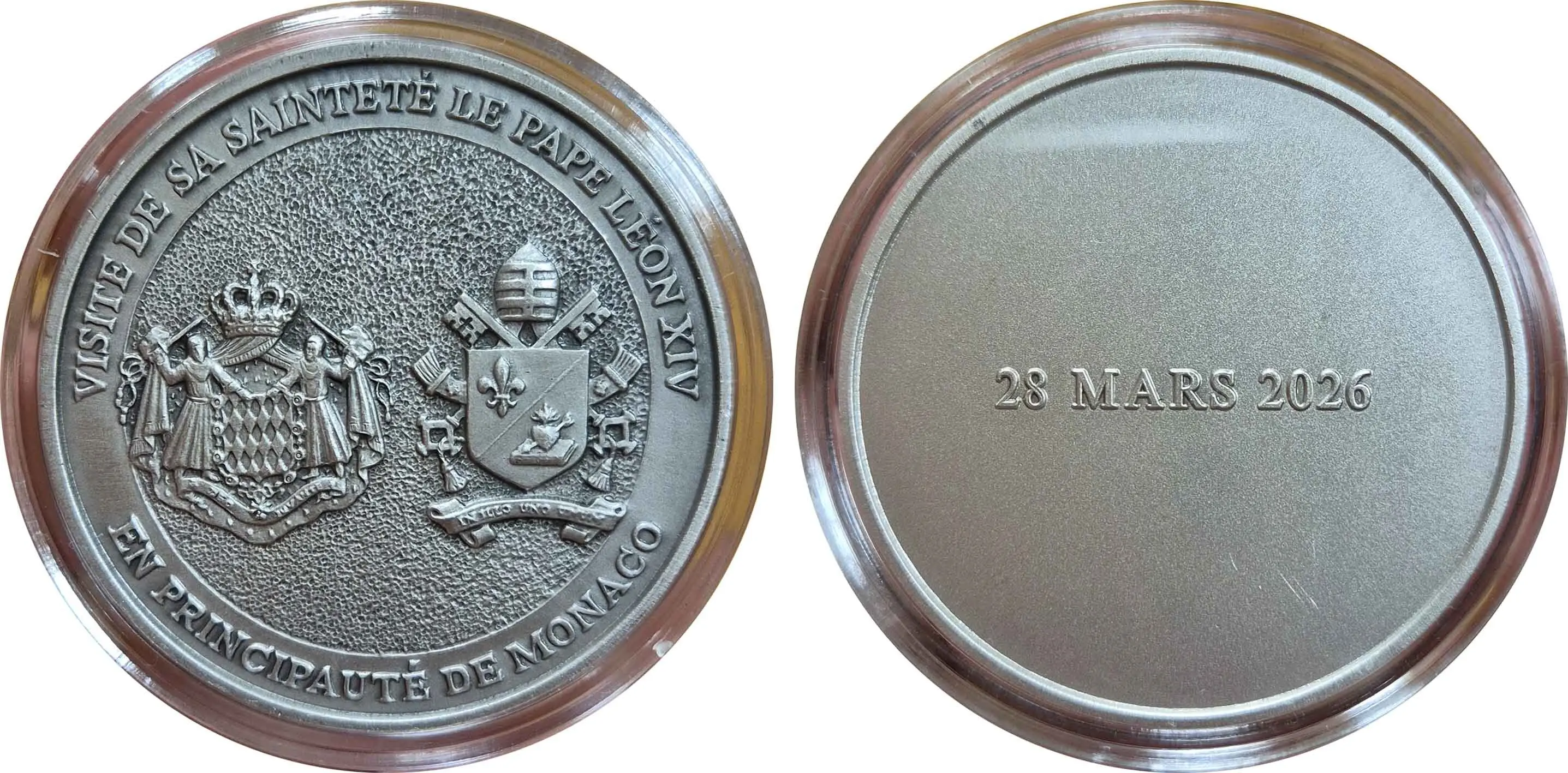 monephil38 Inviato 3 ore fa #1 Inviato 3 ore fa (modificato) Buongiorno, Vi communico questa medaglia della visita del papa Leo XIV a Monaco il 28 marzo 2026 : bronzo argentato, tirata a 3000 ex. da Picchiani & Barlacchi a Firenze. Cordiali saluti Antoine Modificato 2 ore fa da monephil38 Cita