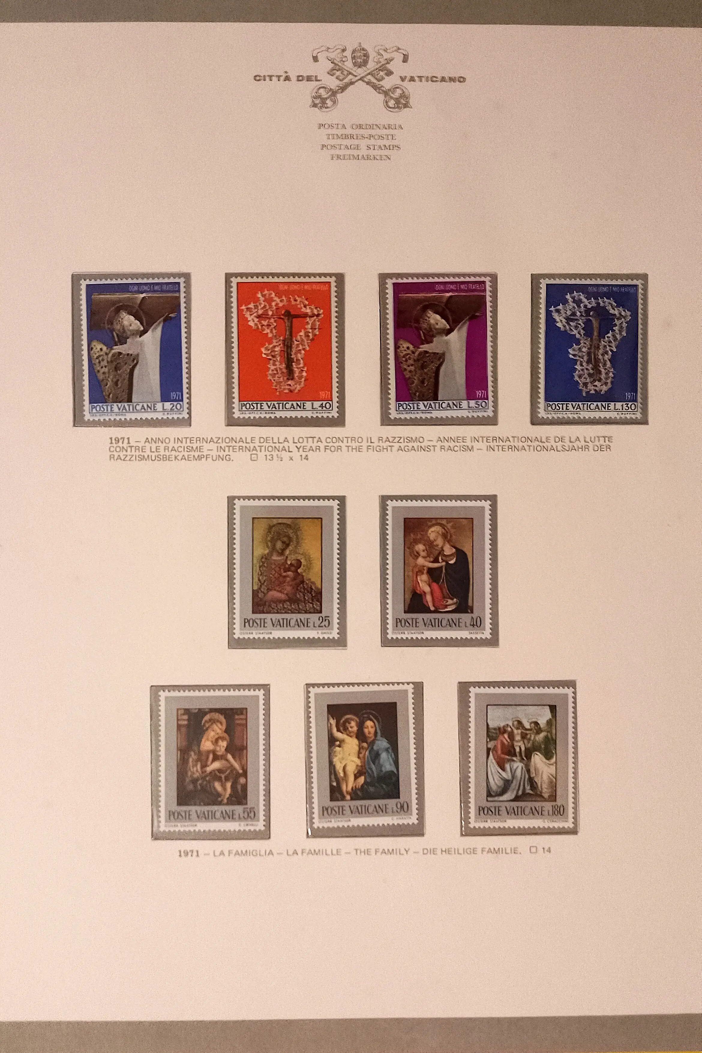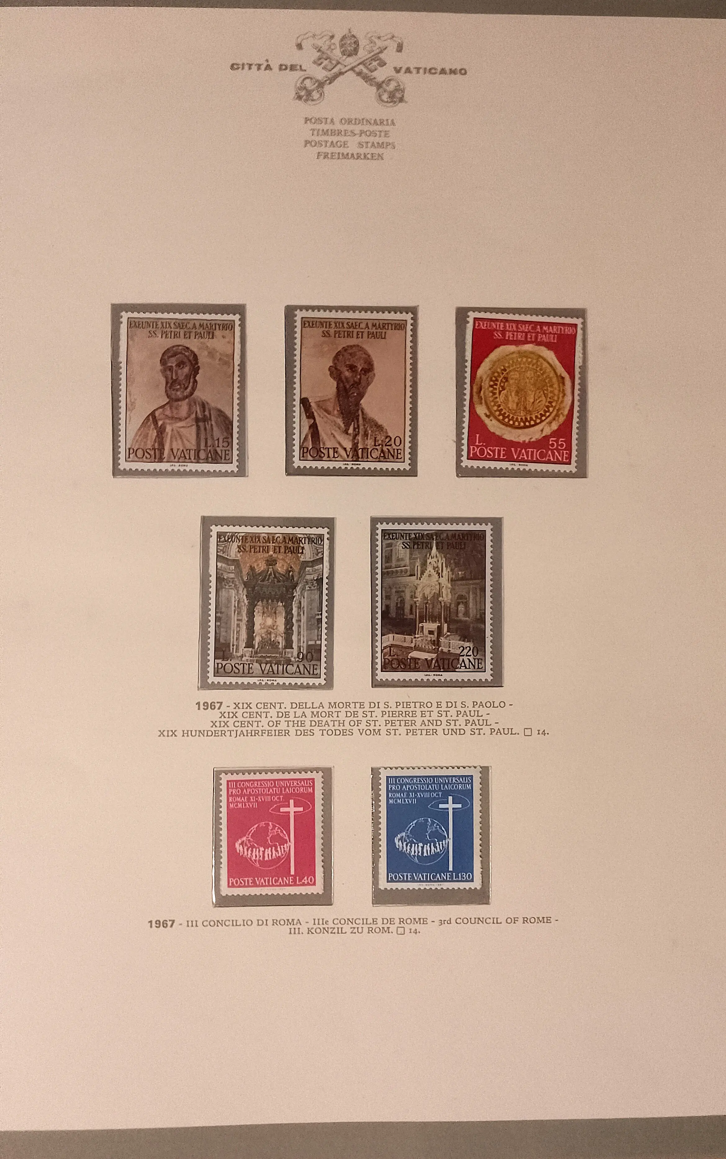 Gordonacci Inviato 1 Aprile #1 Inviato 1 Aprile un saluto a tutti, ritorno sul forum dopo tempo; ho cambiato lavoro e questi mesi sono stati molto intensi lasciandomi pochissimo tempo per lo svago, ma finalmente e con piacere sono qui con voi. Approfitto per chiedere agli esperti filatelici delucidazioni e una eventuale stima su questo album GBE Bolaffi Città del Vaticano con 36 fogli Milord dalla sede vacante 1958 al 1971. Vorrei "liberarmene" per problemi di spazio e sinceramente anche perché come tema non rientra propriamente nei miei interessi, conscio però del suo valore storico ed estetico. In alcune tasche ci sono più esemplari dello stesso francobollo Aggiungo foto Gordon